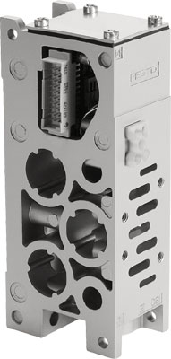 MANIFOLD BLOCK VIGI-04-D-3 FOR VALVE TERMINAL BASED ON THE STANDARD=ISO 5599-2, MAX. NUMBER OF VALVE POSITIONS=1, OPERATING PRESSURE=-0,9 - 16 BAR, AUTHORISATION=UL - RECOGNIZED (OL), OPERATING MEDIUM=COMPRESSED AIR IN ACCORDANCE WITH ISO8573-1:2010 [7:-:-]