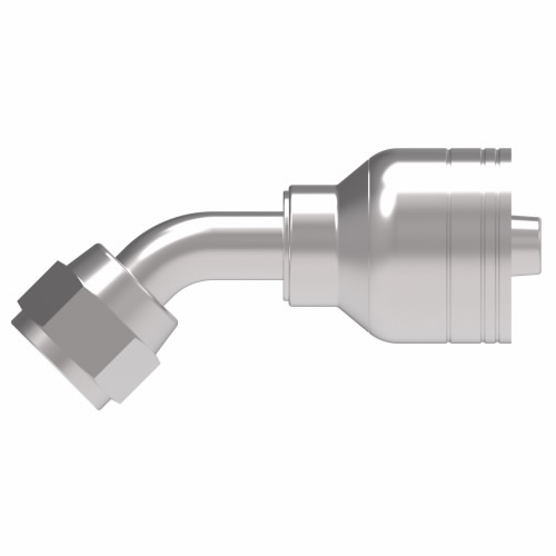 - Angle shape: 45 DegreeApplication: General purpose low and medium pressure hydraulics. Use H277 or H435 where shock hazards existCertifications: SAE J1176Compatible hose id: 0.37 inchCompatible tube od: 0.375 inchConstruction style: CrimpDrop dimension: 0.39Eccn: EAR99End gender 1: FemaleEnd size 1: 9/16 INEnd type 1: JIC 37End Type 2: Line/Hose/TubeFinish plating: DURA-KOTEHex size 1: 0.69 inchHose cut off factor: 1.31 inchHose dash size: -6Inside Diameter: 0.24 inchItem type: Fitting AssemblyOutside Diameter: 1.07 inchProduct height: 0.39Product height uom: inchProduct length: 2.31Product length uom: inchProduct material: Carbon steelProduct trade name: Z SeriesProduct weight: 0.32Product weight uom: poundProduct width: 1.07Product width uom: inchSub brand: WeatherheadThread sealant: NoThread size 1: 9/16-18