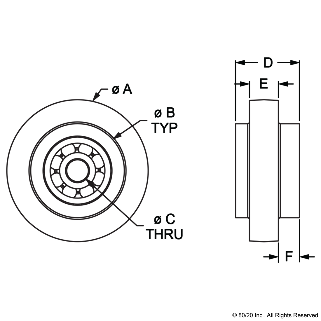 THE ROLLER WHEEL WITH BALL BEARING HUB IS MADE OF NYLON AND IS REINFORCED WITH FIBERGLASS. THE BALL BEARING CREATES A SMOOTH GLIDE AND IS USED TO MOVE FRAMES, PANELS AND COMPONENTS BY ROLLING IN THE PROFILE T-SLOT.,
