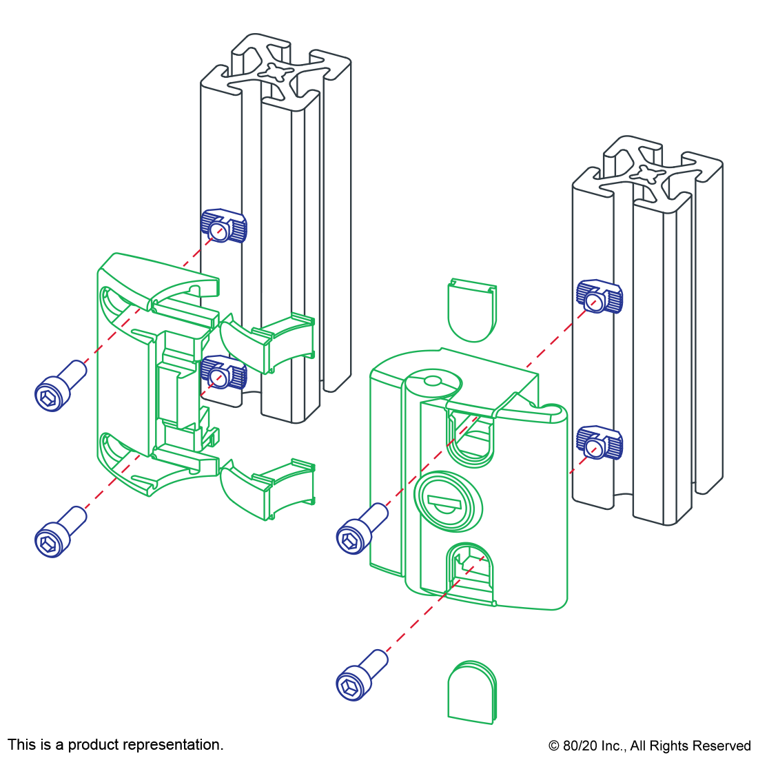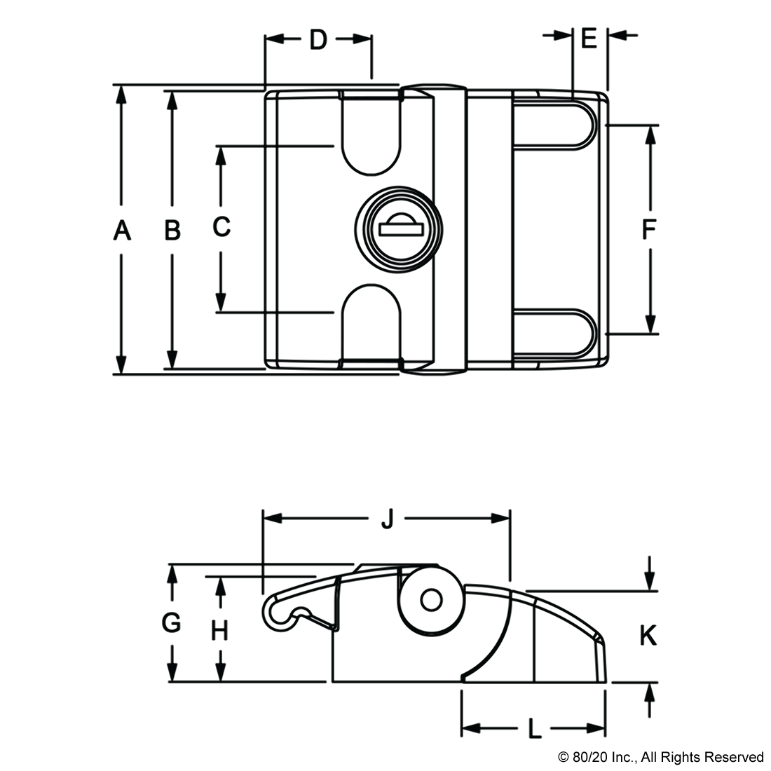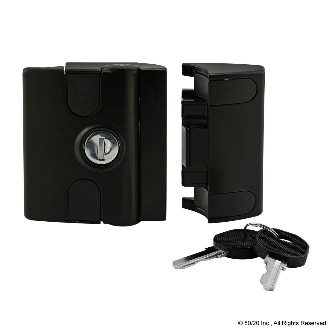 THE SLAM LATCH IS A DIE CAST ALUMINUM HANDLE THAT MOUNTS TO A T-SLOT DOOR OR FRAME FROM THE FRONT. IT PROVIDES A COMPACT HANDLE THAT TAKES UP ONLY A SMALL AMOUNT OF SPACE FROM THE SURFACE OF THE LATCH TO THE PROFILE. THE SLAM LATCH IS SAFE AGAINST DISASSEMBLY IN THE LOCKED POSITION. THERE ARE OPTIONS AVAILABLE WITH BOTH LOCKING MECHANISMS KEYED ALIKE, KEYED DIFFERENT OR WITHOUT A LOCK. NO MACHINING IS REQUIRED.,