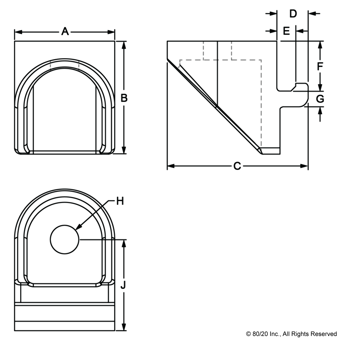 THE ECONOMY ANGLE CLAMP BLOCK IS COMMONLY USED TO CONNECT PROFILES AT VARIABLE ANGLES AND PROVIDE A LARGE DEGREE OF ADJUSTABILITY. THE TAB GRIPS INTO THE MATING PROFILE TO HELP ALIGN AND HOLD THE CLAMP. THE ECONOMY ANGLE CLAMP BLOCK REQUIRES NO MACHINING SERVICES. THE SUGGESTED HARDWARE CAN BE FOUND ON THE "SUGGESTED HARDWARE" TAB.