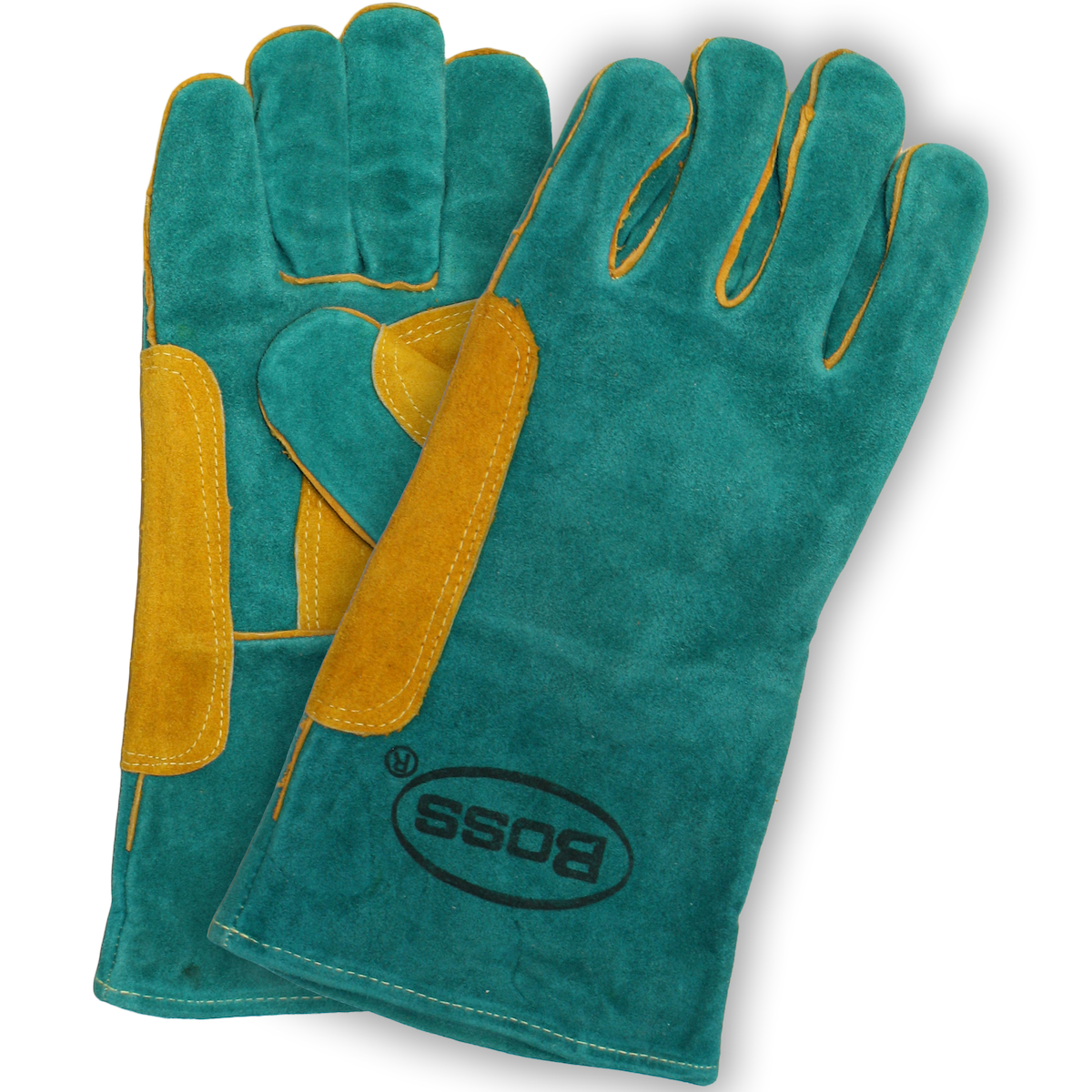 - Brand: Boss®Case qty: 72Case uom: prCategory: Welding ProtectionColor: TealConstruction: --Cut-and-Sewn--Cuff: GauntletFeatures: Full Welting|Fully Lined|Gunn Cut Design|Palm & Support Patch|Split Cowhide Leather Welder|Wing Thumb With Reinforced Strap|Leather Grade: Standard|Grade: RegularGrouping: Hand Protect-WeldingHide: Split CowhideSegment: Welders and Foundry GlovesSize: LSizes: --L--Specs: Full Welting|Fully Lined|Gunn Cut Design Wing Thumb With Reinforced StrapStyle: 1JL0946K