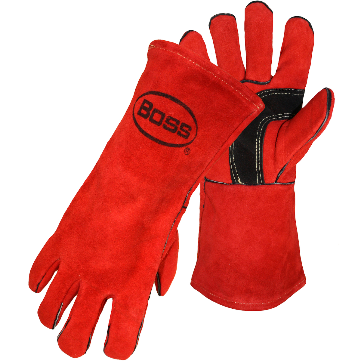 - Brand: Boss®Case qty: 72Case uom: prCategory: Welding ProtectionColor: RedConstruction: --Cut-and-Sewn--Cuff: GauntletFeatures: Full Welting|Fully Lined|Gunn Cut Design|Sewn With Cut & Heat Resistant Aramid Thread|Standard Grade Split Cowhide Leather Welder|Wing Thumb With Reinforced StrapGrade: RegularGrouping: Hand Protect-WeldingHide: Split CowhideLining: CottonSegment: Welders and Foundry GlovesSize: LSizes: --L--Specs: Full Welting|Fully Lined|Gunn Cut Design Sewn With Cut & Heat Resistant Aramid ThreadStyle: 1JL0992K