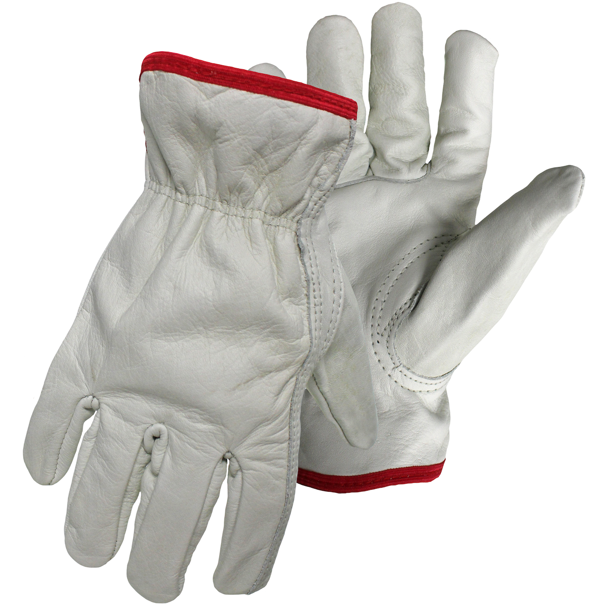 - Brand: Boss®Case qty: 72Case uom: prCategory: Hand ProtectionColor: NaturalCuff: Slip-onFeatures: Color-Coded Open Cuff|Gunn Cut Design|Keystone Thumb|Shirred Elastic Back|Top Grain Cowhide LeatherGrouping: Leather DriversHide: Top Grain CowhideSegment: Unlined Leather Driver`s GlovesSize: MSizes: --3XL--L--M--S--Specs: Top Grain Cowhide|Select Grade|Keystone Thumb|Slip-On CuffStitching: NylonStyle: 1JL4062Thumb: Keystone