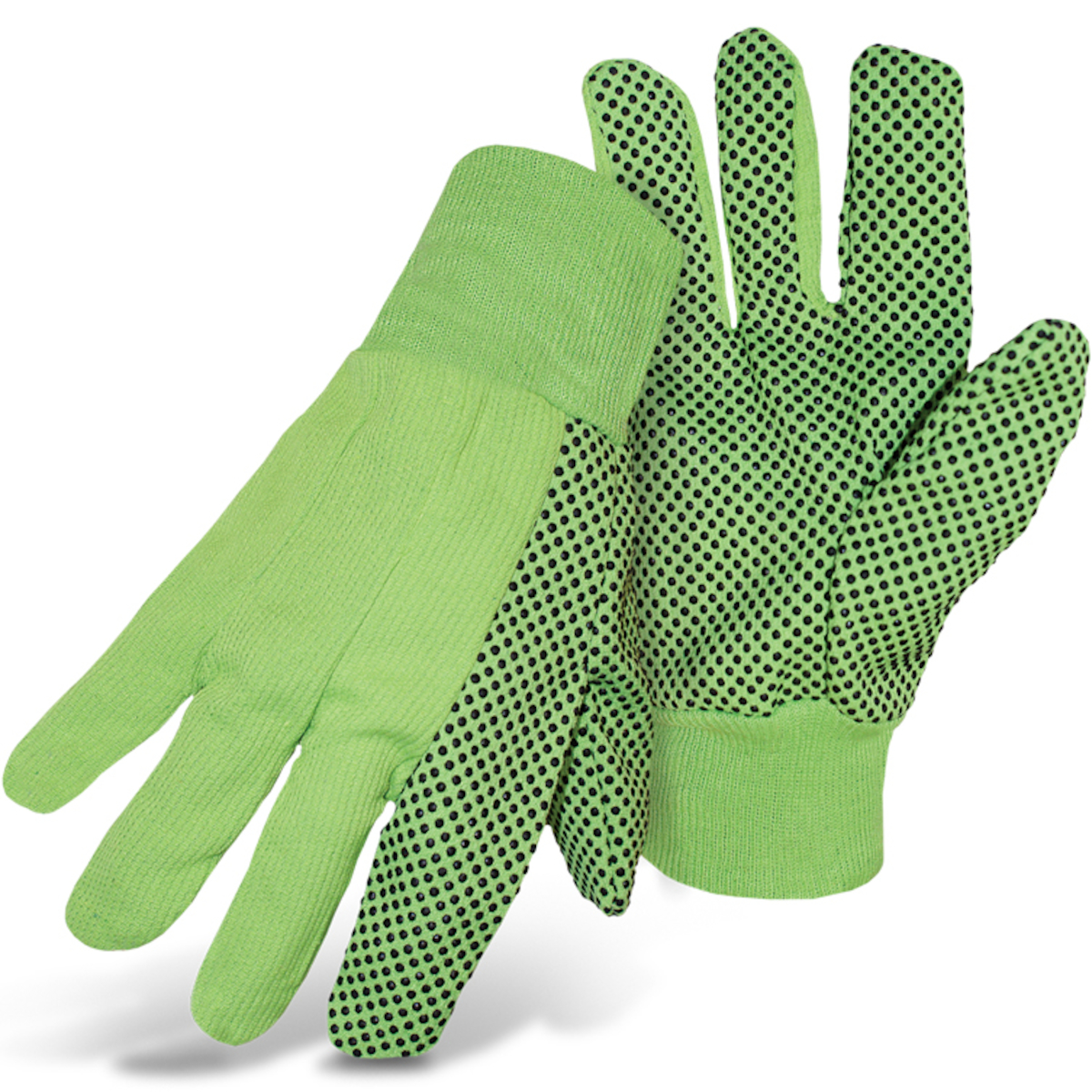 - Brand: PIP®Case qty: 144Case uom: prCategory: Hand ProtectionCoating color: BlackCoating coverage: Palm, Thumb & ForefingerColor: Hi-Vis GreenConstruction: --Clute Cut--Cut-and-Sewn--Cuff: Knit WristFeatures: Black PVC Dotted Palm, Thumb & Index Finger|Clute Cut Design|Knit Wrist|Straight Thumb|Corded Canvas Single PalmGrip: DotGrouping: Fabric Work GlovesLiner material: --Cotton--Polyester--Palm: Plastic DottedProp 65: Cancer and Reproductive HarmProp 65 label: https://us.pipglobal.com/images/P65-Warning-Label-Cancer-and-Reproductive-Harm.jpgSegment: Fabric GlovesSize: LSizes: --L--Specs: 10 oz. Corded Cotton/Poly Blend|Single Palm|Fluorescent Green| Straight Thumb|Black PVC Dot Pattern Grip|Green Knit WristStyle: 1JP5010NThumb: Straight
