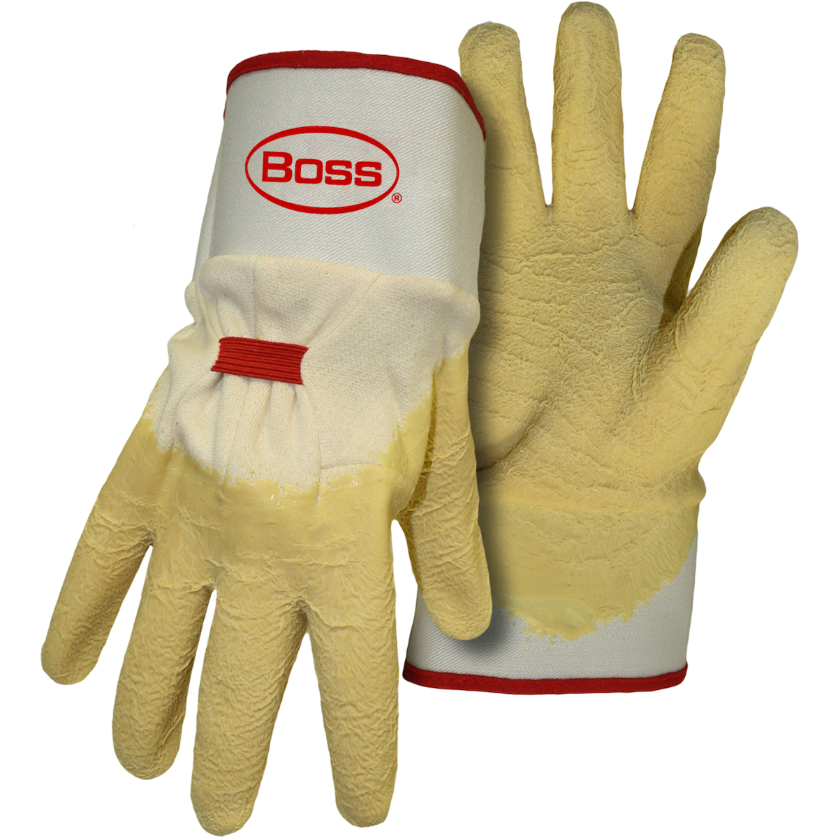 - Brand:Â Power Grip+â„¢Case qty:Â 72Case uom:Â prCategory:Â Hand ProtectionCoating:Â LatexCoating color:Â YellowCoating coverage:Â Palm, Fingers & KnucklesColor:Â NaturalConstruction:Â --Clute Cut--Cut-and-Sewn--Cuff:Â SafetyFeatures:Â Cotton Shell With 3/4 Latex Dip|Crinkled Latex Grip|Safety Cuff|Elastic Back StrapGrip:Â CrinkleGrouping:Â Fabric Work GlovesLiner material:Â --Cotton--Segment:Â Latex Coated Fabric GlovesSize:Â LSizes:Â --L--Specs:Â Yellow Latex Coated|Crinkle Finish|Cotton Lined|Straight Thumb|Safety CuffStyle:Â 1SR8424