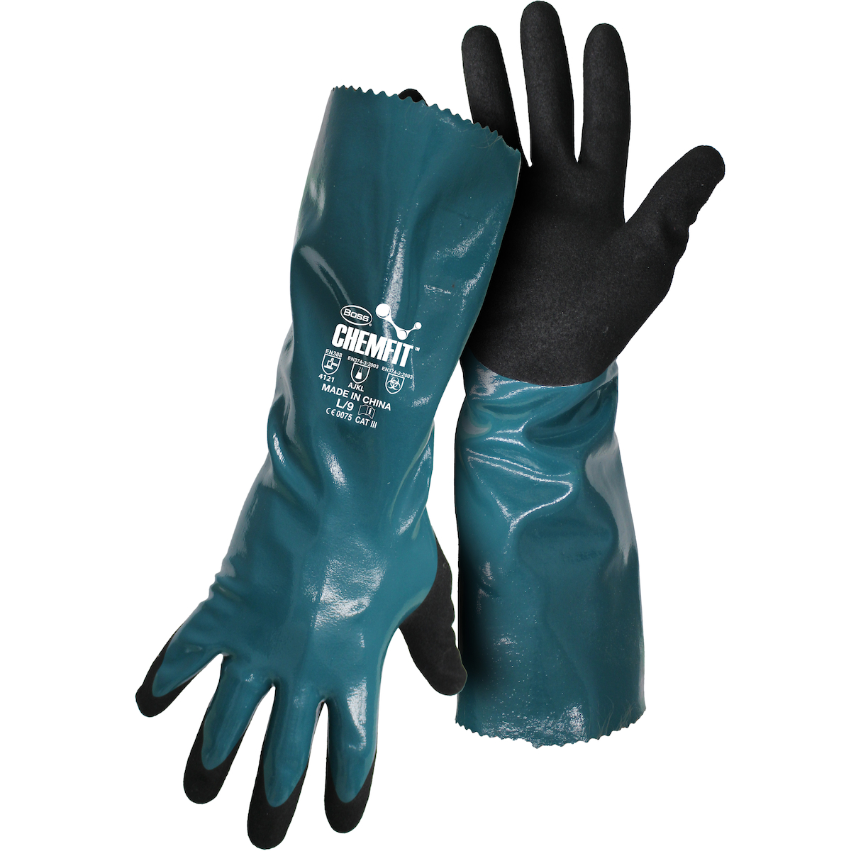 - Brand:Â Chemfitâ„¢Case qty:Â 72Case uom:Â prCategory:Â Hand ProtectionCoating color:Â BlackCoating coverage:Â Palm & FingersColor:Â BlueFeatures:Â 18 Gauge Nylon Liner|Full Coat of Smooth Blue Nitrile|Palm Dip of Sandy Nitrile|12" Pinked Cuff|Liquid Proof|EN388: 4121Grip:Â SandyGrouping:Â Chemical ResistantLength:Â 12Lining:Â NylonPolymer:Â NitrileSegment:Â Coated Supported GlovesSize:Â MSizes:Â --2XL--L--M--XL--Specs:Â Chemfit| Sandy Nitrile Finish| 12"| Liquid Proof 18G Nylon LinerStyle:Â 1UH7013