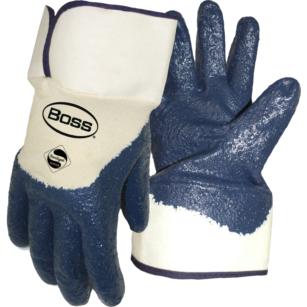- Brand: Boss®Case qty: 144Case uom: prCategory: Hand ProtectionColor: NaturalFeatures: 2-Piece Jersey Liner|Partially Coated|Rough Grip|Safety Cuff|Sanitized® TreatedGrouping: SeamlessGlove CoatedSegment: Coated Supported GlovesSize: LSizes: --L--Specs: Jersey Liner|3/4 Dip Blue Nitrile Coating|Rough Finish|Safety Cuff| STYLE NOW ON CLOSEOUT AT A GREAT PRICE!Style: 1UH7164