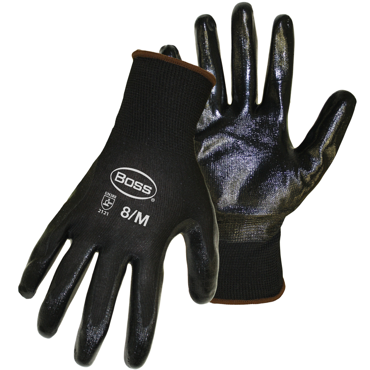 - Brand: Boss®Case qty: 144Case uom: prCategory: Hand ProtectionColor: BlackFeatures: 13 Gauge Seamless Nylon Shell|Palm Dip Of Smooth Nitrile|Knit Wrist With Color-Coded Hem|Breathable Back|EN 388: 2121 (Cut Level 1)Grouping: SeamlessGlove CoatedSegment: Seamless Knits for General DutySize: XLSizes: --L--M--S--XL--Specs: BOSS® BLACK ASSEMBLY GRIP PALM DIPPED WITH COLOR CODED HEMStyle: 1UH7810