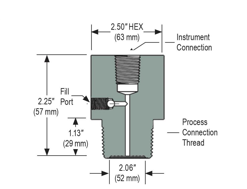 - Available instrument connection sizes are 1/4†and 1/2" with a process connection size of 1/2" NPT male to 2" NPT male