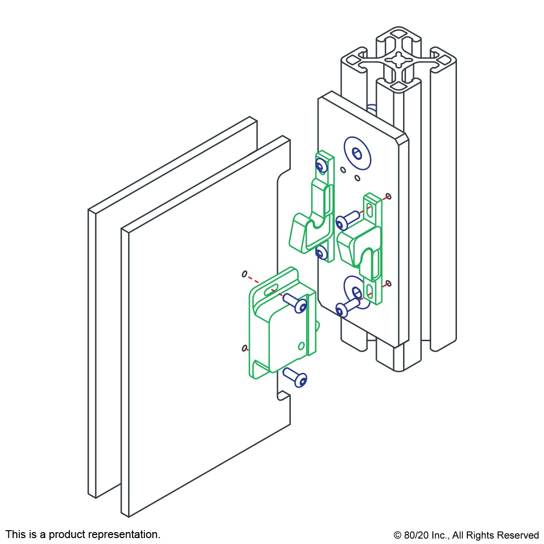 THE GRABBER™ DOOR CATCH IS MADE OF CORROSION-RESISTANT BLACK ABS WITH THREE DIFFERENT PULL FORCES AVAILABLE. IT IS SPRING-LOADED AND MOUNTS TO A T-SLOT WITH A GRABBER™ DOOR CATCH MOUNTING PLATE ON THE INSIDE OF AN ENCLOSURE TO CREATE A PUSH TO CLOSE/PULL TO OPEN LATCH. THE REQUIRED HARDWARE TO MOUNT THE GRABBER™ DOOR CATCH TO THE PLATE IS INCLUDED. IT REQUIRES A GRABBER™ DOOR CATCH CLEARANCE MACHINING SERVICE WHICH INCLUDES THE TAP.