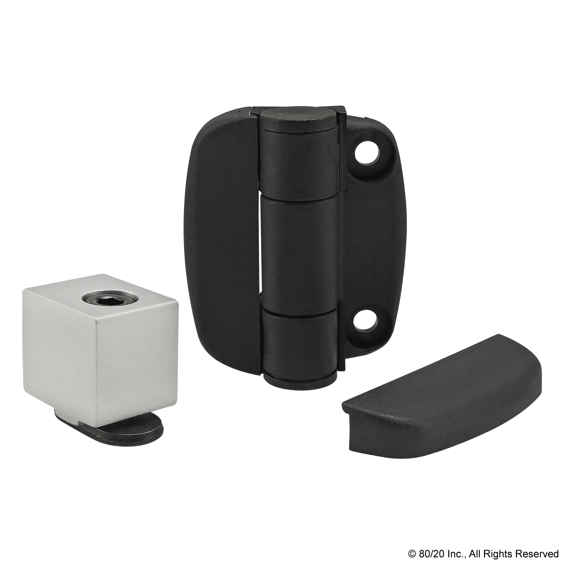 THE 4 HOLE - DETENT HINGE IS COMMONLY USED TO CONNECT PLASTIC PANELS AND DOORS TO T-SLOT PROFILES. IT HOLDS DOORS OPEN AT 120 OR 170 DEGREES AND IS ESPECIALLY USEFUL IN HORIZONTAL-LIFTING APPLICATIONS, AS IT PROVIDES HANDS-FREE ACCESS. IT INCLUDES SNAP-ON COVERS THAT HIDE THE HARDWARE TO MOUNT TO A PANEL OR PROFILE AS WELL AS A DETENT HINGE STOPPER AND ITS MOUNTING HARDWARE. IMPORTANT CAUTION: THIS HINGE IS NOT SUITABLE FOR CONNECTING MULTIPLE T-SLOT PROFILES.,