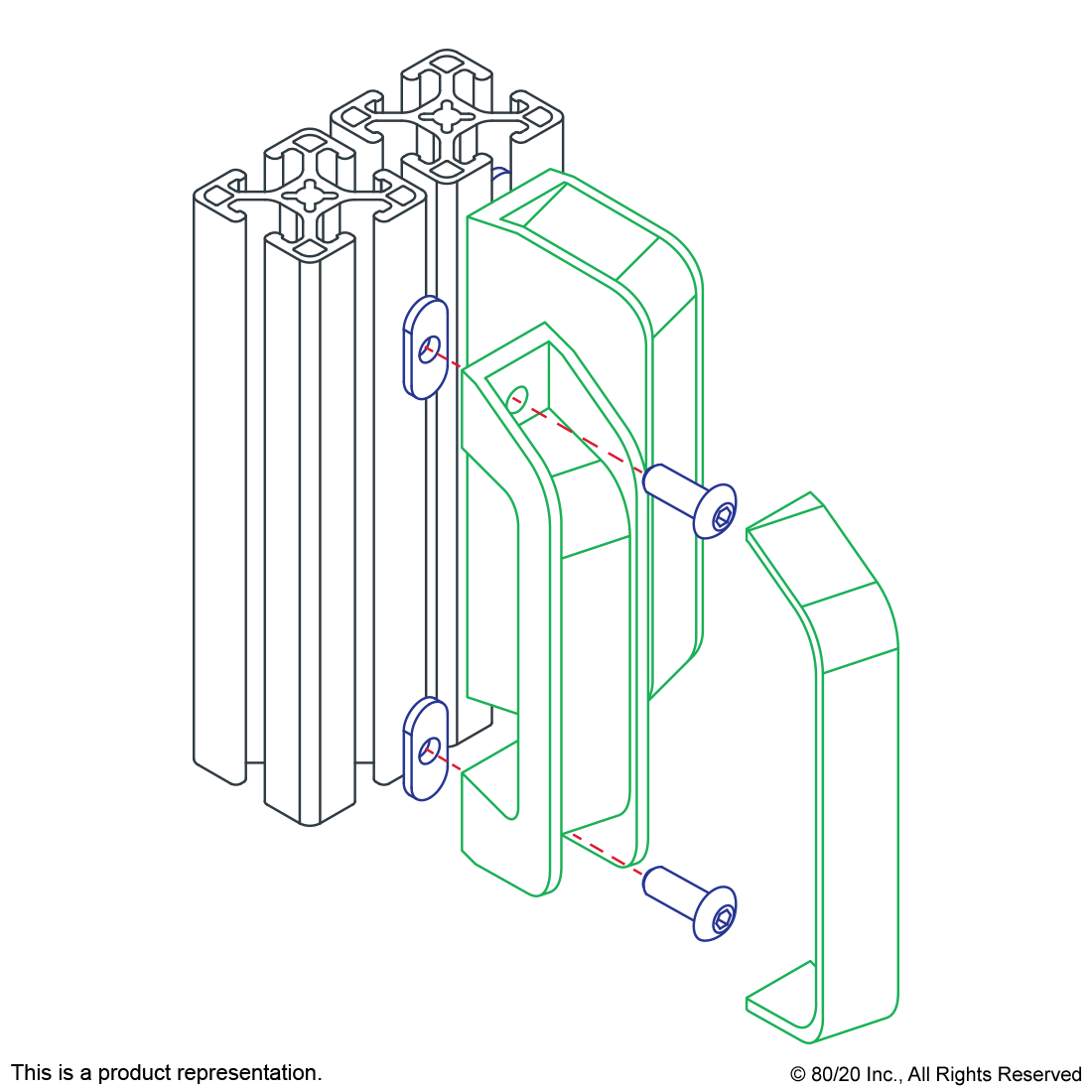 THE OFFSET PLASTIC HANDLE IS MADE OF FIBERGLASS-REINFORCED NYLON THAT IS CORROSION-RESISTANT MAKING IT USEFUL FOR BOTH INDOOR AND OUTDOOR APPLICATIONS. IT BOLTS DIRECTLY TO THE T-SLOT PROFILE AND IS IDEAL FOR BI-FOLD DOORS. ONE SIDE IS COMPLETELY SOLID TO PREVENT FINGER-PINCHING AND THERE IS AN ORANGE SNAP-ON COVER INCLUDED TO HIDE THE MOUNTING SCREWS AND PROVIDE A CLEAN LOOK. ALL MOUNTING HARDWARE IS INCLUDED.