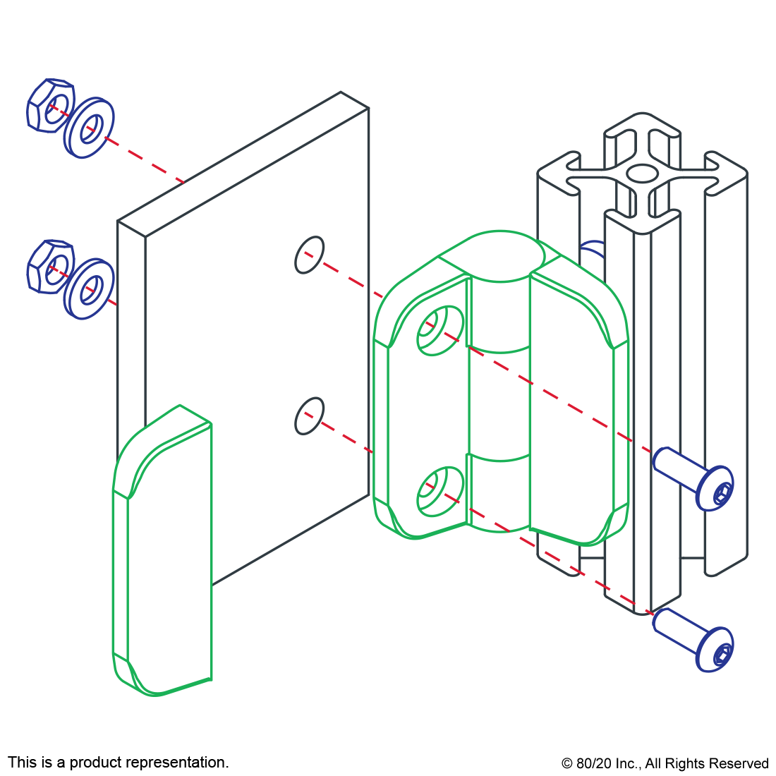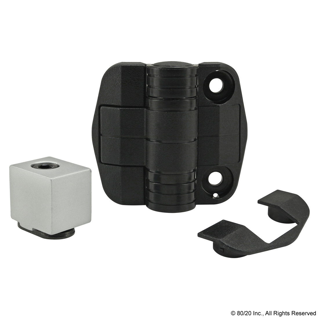 THE 4 HOLE - DETENT HINGE IS COMMONLY USED TO CONNECT PLASTIC PANELS AND DOORS TO T-SLOT PROFILES. IT HOLDS DOORS OPEN AT 120 OR 170 DEGREES AND IS ESPECIALLY USEFUL IN HORIZONTAL-LIFTING APPLICATIONS, AS IT PROVIDES HANDS-FREE ACCESS. IT INCLUDES SNAP-ON COVERS THAT HIDE THE HARDWARE TO MOUNT TO A PANEL OR PROFILE AS WELL AS A DETENT HINGE STOPPER AND ITS MOUNTING HARDWARE. IMPORTANT CAUTION: THIS HINGE IS NOT SUITABLE FOR CONNECTING MULTIPLE T-SLOT PROFILES.,