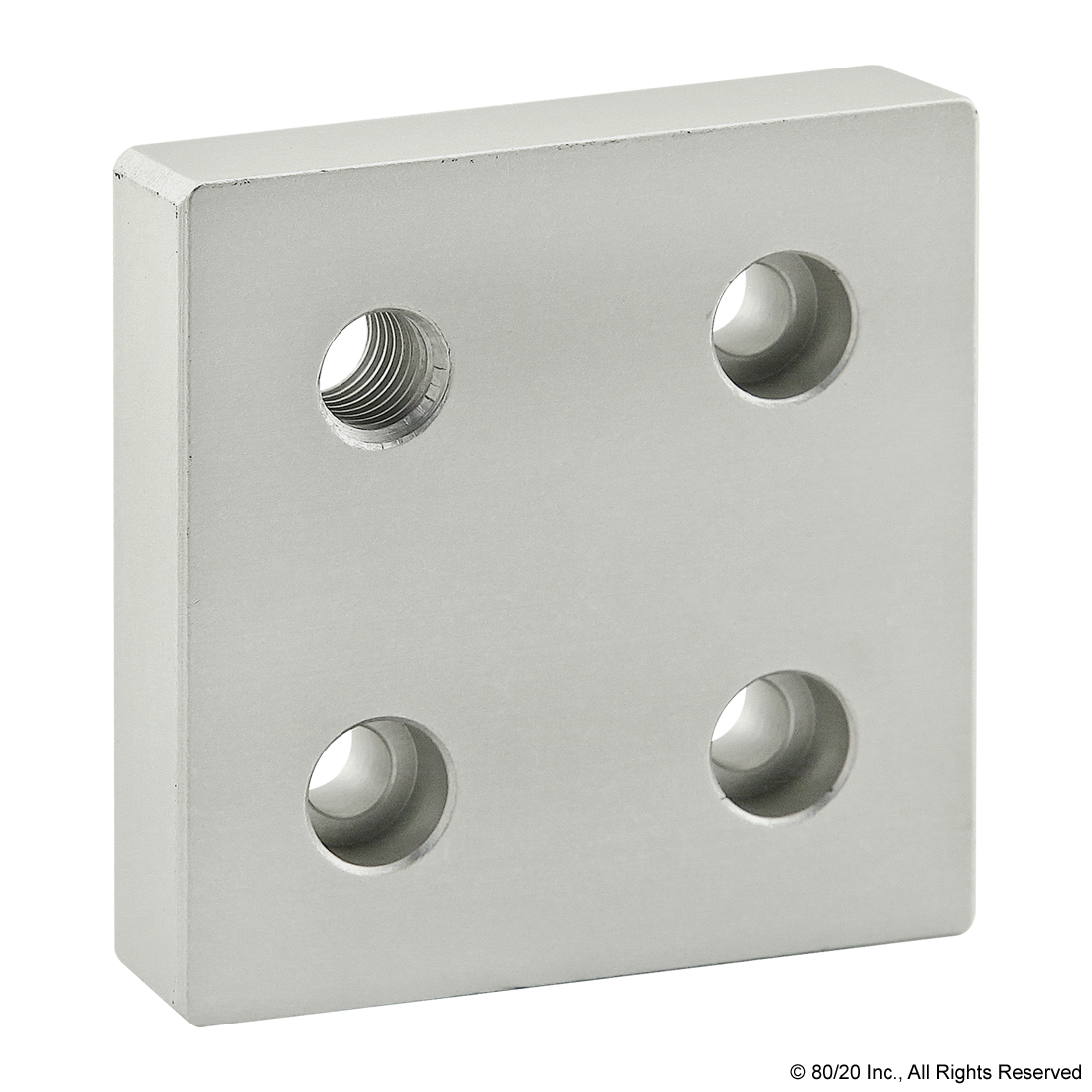 THE 4 HOLE - OFFSET TAP BASE PLATE IS MADE OF ANODIZED ALUMINUM TO WITHSTAND DAILY USE AND WEAR AND TEAR. IT MOUNTS LEVELING FEET AND THREADED STEM CASTERS TO A PROFILE END OR SIDE FOR AN ADDED LAYER OF STRENGTH AND DURABILITY. THE OFFSET PROVIDES CLEARANCE FOR THE THREADED STEM PROVIDING A GREATER CLEARANCE AREA. IT REQUIRES A TAP TO MOUNT TO A PROFILE END.