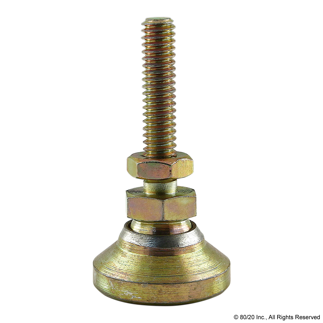 THE DELUXE LEVELING FOOT HAS A JAM NUT THAT ALLOWS IT TO PIVOT 20 DEGREES TO ACCOMMODATE UNEVEN FLOORS. THERE ARE OPTIONS AVAILABLE WITH LOAD CAPACITIES RANGING FROM 1000-7400 POUNDS (317-3357 KILOGRAMS). THE DELUXE LEVELING FOOT IS A HEAVY-DUTY OPTION IDEAL FOR LARGE STRUCTURES AND COMMONLY MOUNTS TO A PROFILE WITH A BASE PLATE.