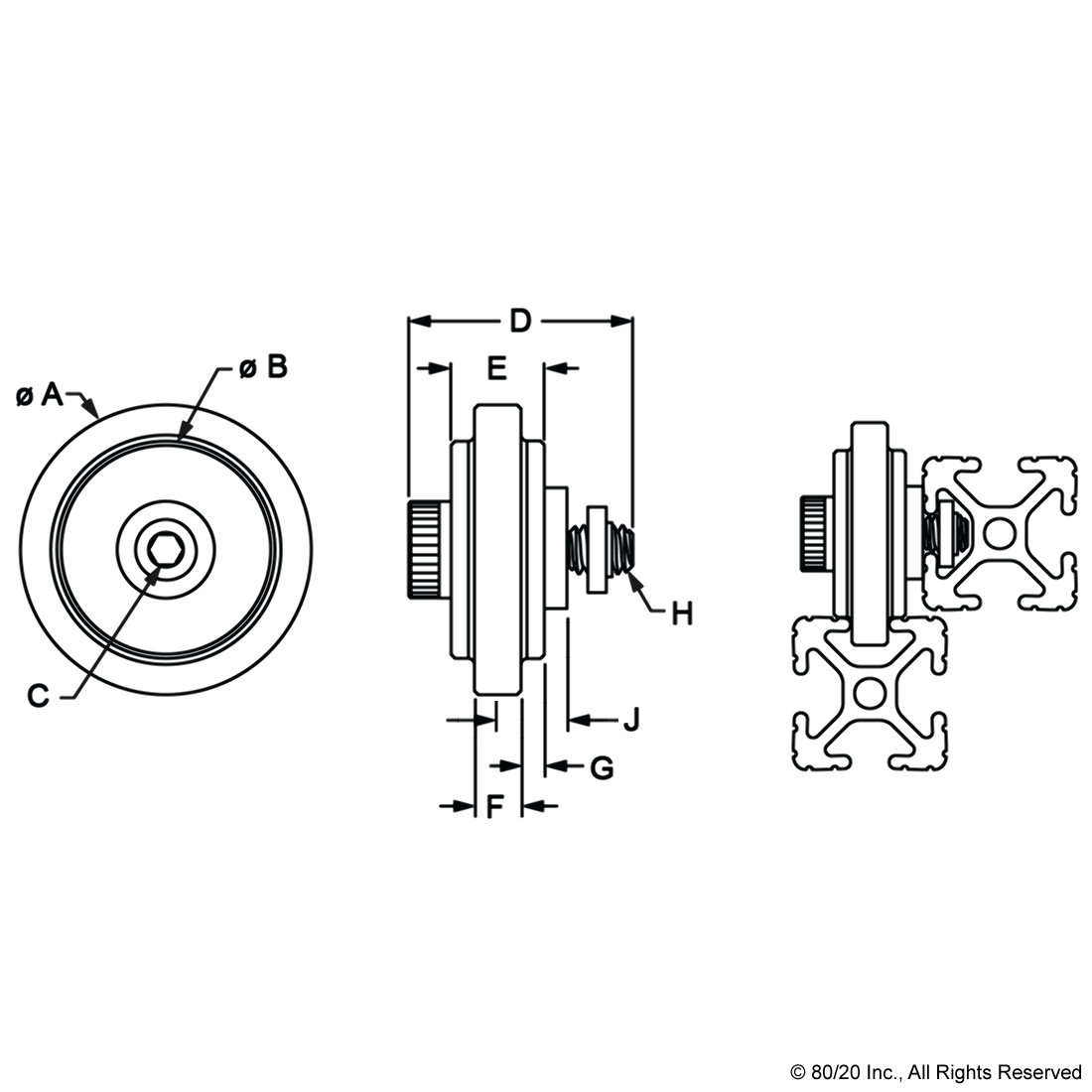 THE ROLLER WHEEL WITH PERMANENT LUBRICATED BUSHING IS IDEAL FOR GUIDED LINEAR MOTION AND HAS A BRONZE BUSHING THAT REQUIRES NO ADDITIONAL LUBRICATION. THE ROLLER WHEEL MOUNTS TO THE PROFILE END OR T-SLOT AND INCLUDES THE MOUNTING HARDWARE.