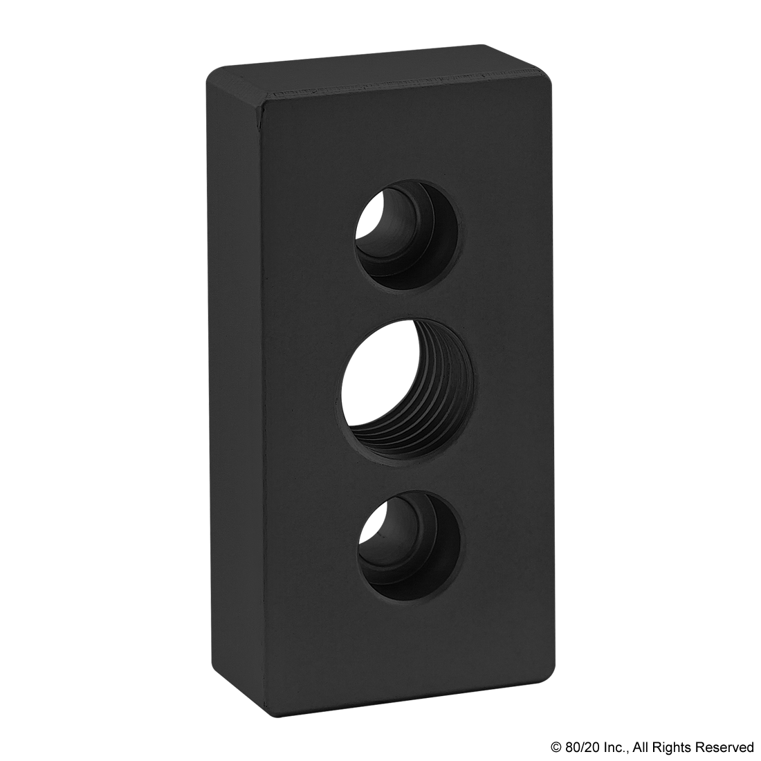 THE 3 HOLE - CENTER TAP BASE PLATE IS MADE OF ANODIZED ALUMINUM TO WITHSTAND DAILY USE AND WEAR AND TEAR. IT MOUNTS LEVELING FEET AND THREADED STEM CASTERS, AND IS COMMONLY USED ON A RECTANGULAR PROFILE END TO CENTER MOUNT THE FOOT OR CASTER. THE 3 HOLE - CENTER TAP BASE PLATE CAN ALSO BE USED ON A PROFILE SIDE. IT REQUIRES A TAP TO MOUNT TO A PROFILE END.,