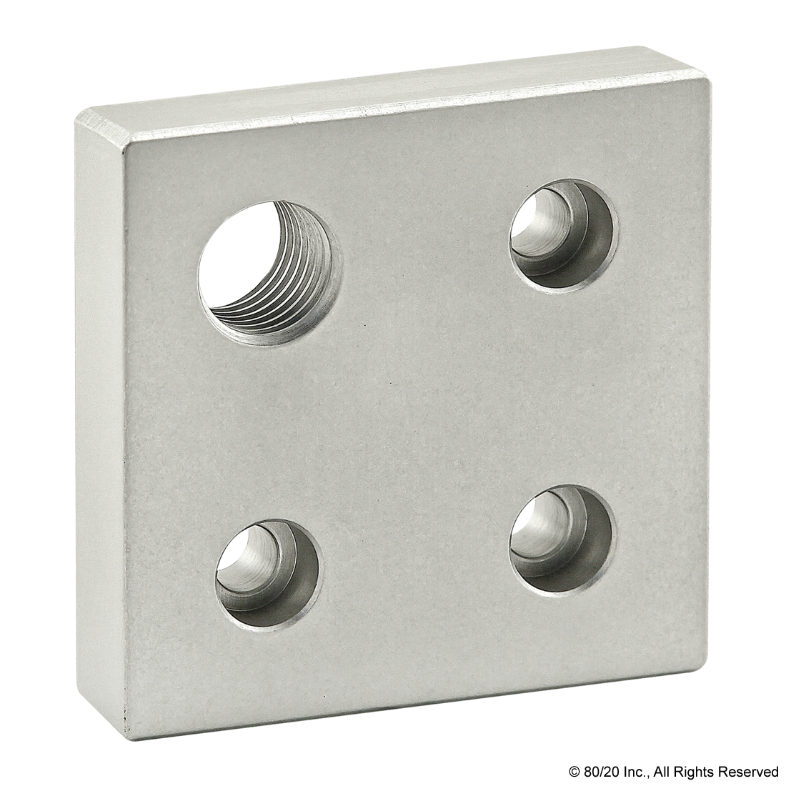 THE 4 HOLE - OFFSET TAP BASE PLATE IS MADE OF ANODIZED ALUMINUM TO WITHSTAND DAILY USE AND WEAR AND TEAR. IT MOUNTS LEVELING FEET AND THREADED STEM CASTERS TO A PROFILE END OR SIDE FOR AN ADDED LAYER OF STRENGTH AND DURABILITY. THE OFFSET PROVIDES CLEARANCE FOR THE THREADED STEM PROVIDING A GREATER CLEARANCE AREA. IT REQUIRES A TAP TO MOUNT TO A PROFILE END.