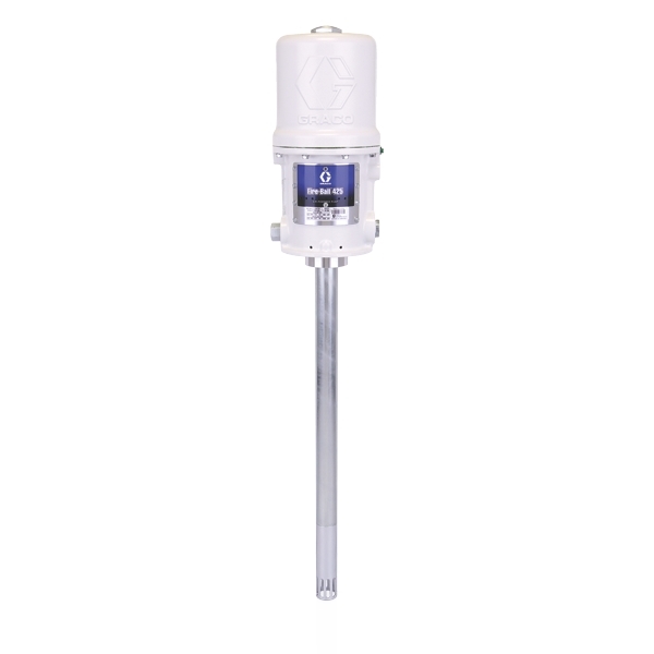 - Air inlet size (cm): 1.27Air inlet size (in): 0.5Air inlet size (mm): 12.7Air inlet thread gender: FemaleAir inlet thread type: NPTAir motor effective diameter (in): 4.25Application: IndustrialApplication text: The Fire-Ball 425 is the pump of choice for your most demanding high volume applications.Compatible material: GreaseCycles per gallon: 165Dimension uom code: INDivision code: LEDFluid inlet type: SlottedFluid outlet size (cm): 0.9525Fluid outlet size (in): 3/8Fluid outlet size (mm): 9.525Fluid outlet thread gender: FemaleFluid outlet thread type: NPTFor use with: GreaseMaximum air inlet pressure (bar): 6.9Maximum air inlet pressure (kpa): 690Maximum air inlet pressure (psi): 100Maximum continuous cycle rate (cpm): 60Maximum flow rate (gpm): 0.33Maximum flow rate (l/min): 1.25Maximum intermittent cycle rate (cpm): 60Maximum working pressure (bar): 517Maximum working pressure (kpa): 51700Maximum working pressure (mpa): 51.7Maximum working pressure (psi): 7500Power type: PneumaticPump ratio: 75:1Seal Material: Nitrile RubberSound power level (db(a)): 94.62Sound pressure level (db(a)): 80.85Throat seal type: WiperType: Pneumatic Piston PumpWeight (kg): 1.3620Weight (lb): 30Wetted Material: CS;Steel;Brass;Aluminum;Leather
