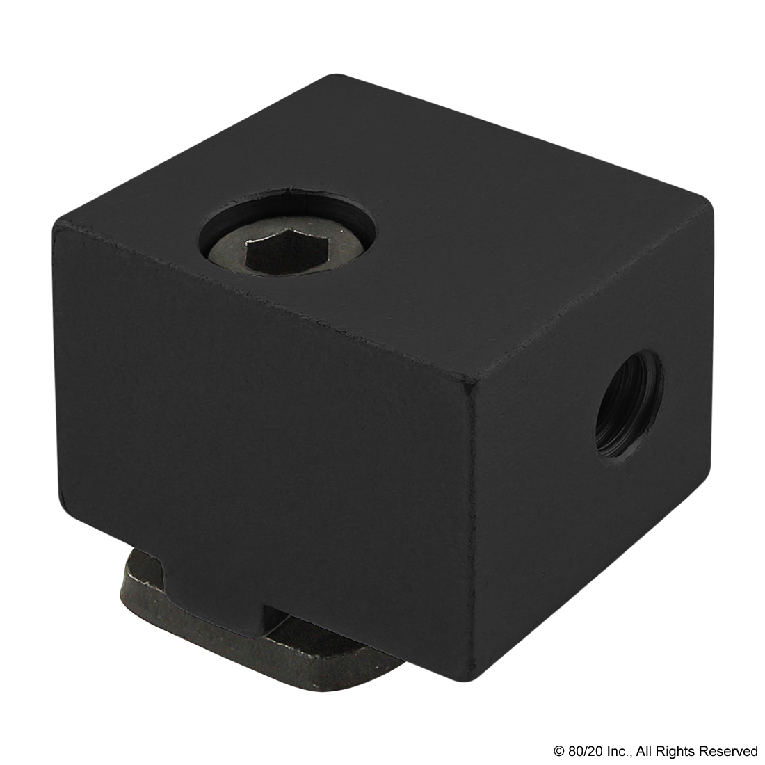 THE HEAVY PANEL MOUNT BLOCK CAN BE USED TO MOUNT A PANEL FLUSH WITH A PROFILE EDGE OR ON THE PROFILE SURFACE. THERE IS A SLOT TAB ON THE BLOCK THAT ACTS TO ALIGN THE MOUNT IN THE T-SLOT. THE HEAVY PANEL MOUNT BLOCK INCREASES STABILITY OF THE MOUNTED PANEL WHILE ALSO REDUCING VIBRATION. IT IS EASY TO USE AND SIMPLIFIES THE PROCESS OF ADDING OR REMOVING PLASTIC PANELS. THE HARDWARE TO MOUNT THE BLOCK TO THE T-SLOT IS INCLUDED WHILE THE HARDWARE TO MOUNT THE PANEL TO THE BLOCK SHOULD BE BASED ON THE PANEL TYPE AND THICKNESS. THIS PART MOUNTS 1/4" PANELS FLUSH WITH 15 SERIES PROFILES.