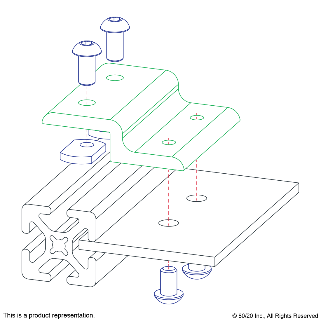 THE SINGLE ARM WIDE PANEL RETAINER IS USED TO MOUNT A PANEL WHEN IT IS RECESSED WITHIN THE T-SLOT OR ON THE PROFILE FRAME. THIS IS A STRONGER CONNECTION THAT IS ALSO SIMPLE TO USE, PROVIDES STABILITY AND REDUCES VIBRATION. THE SINGLE ARM WIDE PANEL RETAINER IS FREQUENTLY USED WHEN MOUNTING ONE PANEL TO A PROFILE OR IN INSTANCES WHEN LARGER PROFILE SERIES ARE USED TO MOUNT TWO PANELS. IT REQUIRES A DRILL THROUGH MACHINING SERVICE ON THE PANEL.,