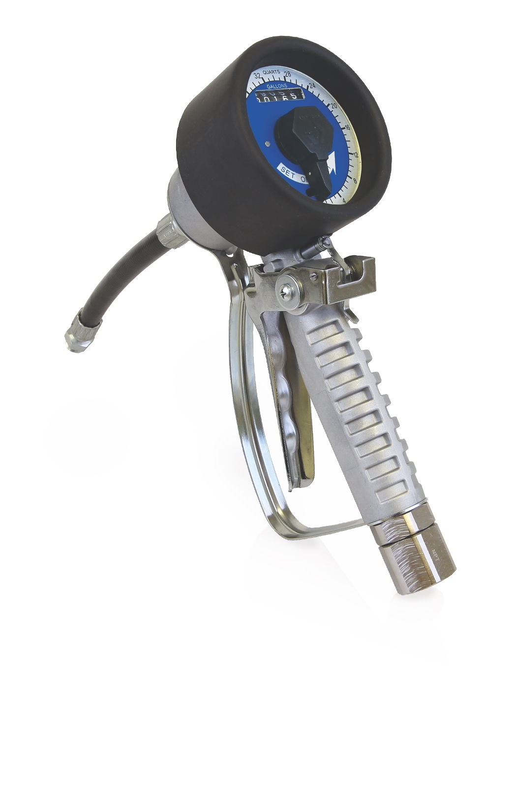 - Application text: Typical applications include Automotive dealerships, Heavy-duty dealerships, Fast lube centers, Fleet service facilities, In-plant, Lube trucks, and Mining.Compatible material: Oil;AntifreezeDimension uom code: INDispense type: PresetDisplay Type: MechanicalDivision code: LEDExtension type: FlexibleIncludes: Bare Meter;Nozzle KitInlet size (cm): 1.27Inlet size (in): 1/2Inlet size (mm): 12.7Inlet thread type: NPTMaximum flow rate (gpm): 8Maximum flow rate (l/min): 30Maximum operating temperature (°c): 70Maximum operating temperature (°f): 160Maximum working pressure (bar): 103.4Maximum working pressure (kpa): 10340Maximum working pressure (mpa): 10Maximum working pressure (psi): 1500Meter accuracy (%): Â±1%Meter pressure loss (bar): 2Meter pressure loss (kpa): 200Meter pressure loss (psi): 30Metering gun weight (kg): 1.58Metering gun weight (lb): 3.5Minimum operating temperature (°c): -45Minimum operating temperature (°f): -50Nozzle type: ManualOutlet size (cm): 1.27Outlet size (in): 1/2Outlet size (mm): 12.7Outlet thread type: NPTRecommended environment: Indoor;OutdoorTrigger lock: LockingType: Mechanical Metered Dispense ValveValve Type: MeteredWetted Material: Brass;Aluminum;Stainless Steel;TPE