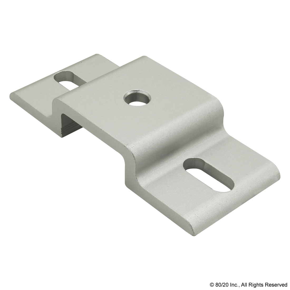 THE DOUBLE ARM NARROW MESH RETAINER IS USED TO MOUNT A MESH PANEL WHEN IT IS RECESSED WITHIN THE T-SLOT OR ON THE PROFILE FRAME. IT PROVIDES STABILITY AND REDUCES VIBRATION WHILE ALSO BEING A STRONG FASTENING OPTION THAT IS SIMPLE TO USE AND EASILY REPOSITIONED. THE DOUBLE ARM NARROW MESH RETAINER IS PERFECT IN INSTANCES WHEN A PROFILE IS CONNECTING TWO ADJACENT PANELS. IT HAS SLOTTED HOLES TO ALLOW FOR POSITIONING SO THAT THE BOLTS WON€™T CRASH INTO THE MESH. THE MESH RETAINER REQUIRES BACKING PLATES. THE SUGGESTED HARDWARE TO MOUNT THE RETAINER TO THE T-SLOT IS LISTED ON THE "SUGGESTED HARDWARE" TAB WHILE THE HARDWARE FOR THE BACKING PLATES SHOULD BE BASED ON THE PANEL TYPE AND THICKNESS.