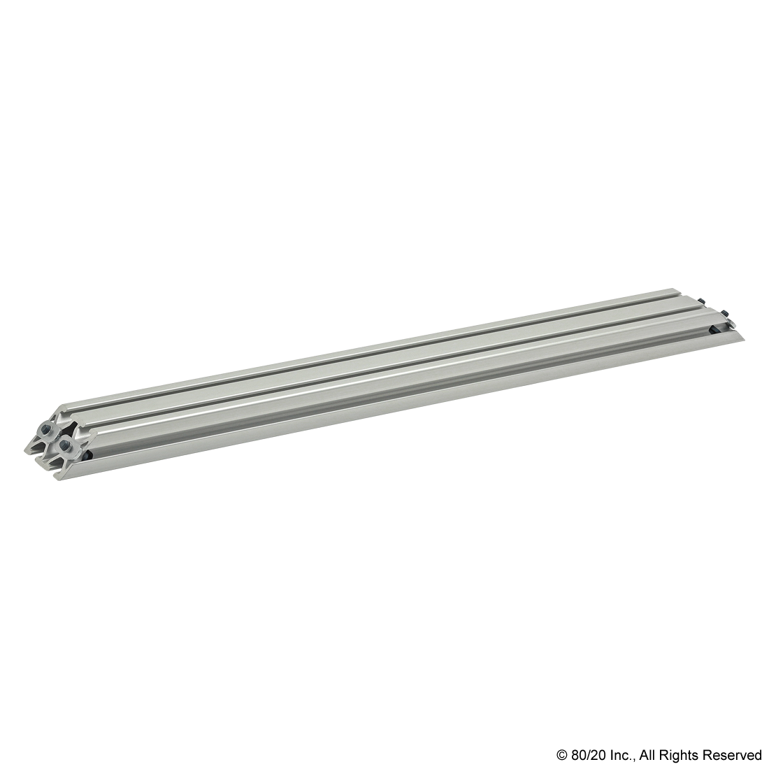 THE 45 DEGREE SUPPORT ASSEMBLY INCLUDES SOCKET HEAD CAP SCREWS, WASHERS AND T-NUTS. THE SUPPORT ASSEMBLY IS PRE-MACHINED WITH COUNTERBORES AND A 45 DEGREE MITER ANGLE ON BOTH ENDS. THIS FASTENING METHOD PROVIDES A CLEAN, FLUSH CONNECTION AND IS TYPICALLY USED TO REINFORCE A 90 DEGREE CONNECTION. THIS CONNECTION LENDS ITSELF TO APPLICATIONS WITH HEAVY LOADS TO MINIMIZE BEAM DEFLECTION.