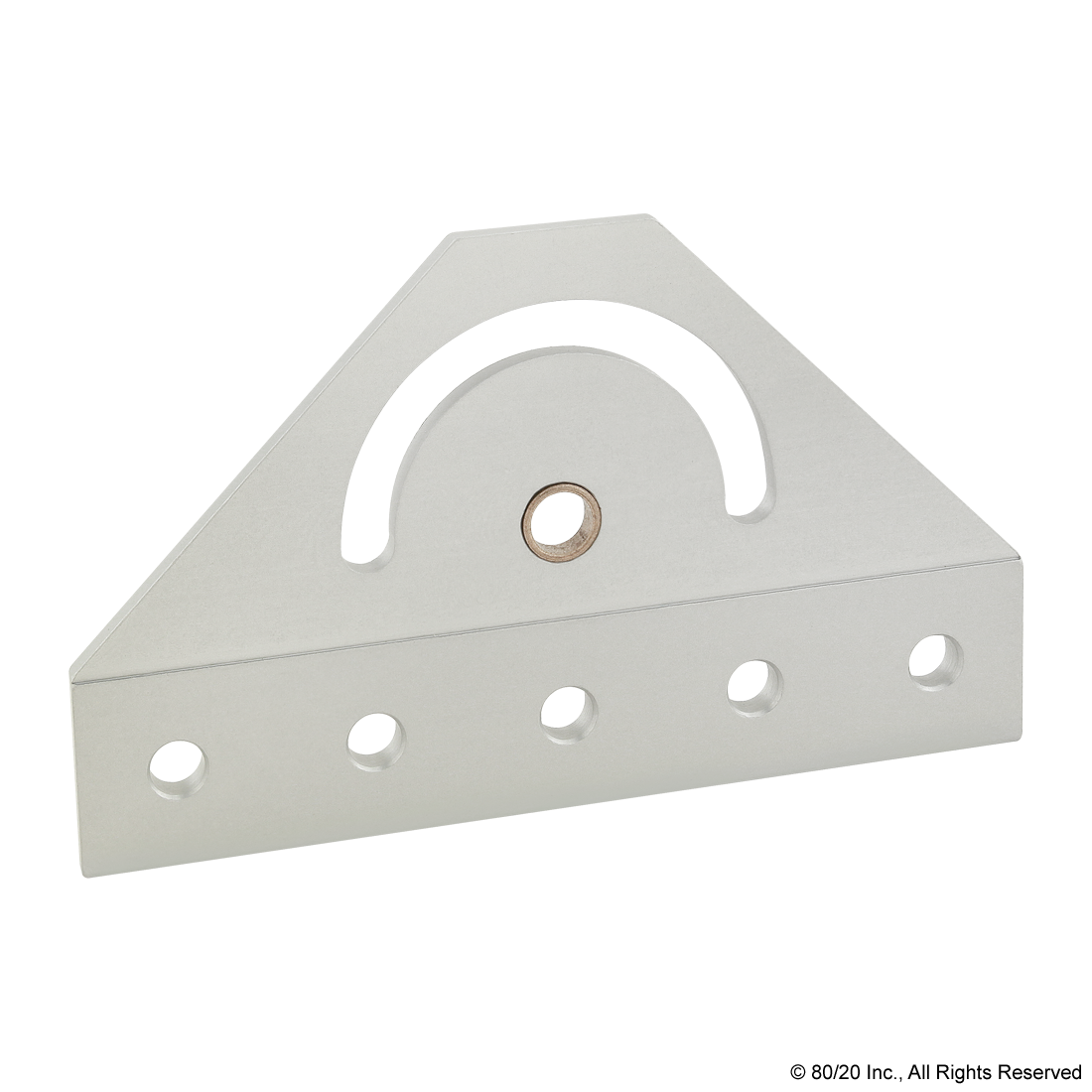 THE 180 DEGREE PIVOT BRACKET PLATE IS COMMONLY USED TO ADD MOTION TO CERTAIN ELEMENTS OF YOUR PROJECT. THE PLATE PROVIDES A FULL 180 DEGREES OF AXIAL MOTION AND HAS PERMANENTLY LUBRICATED BRONZE BUSHINGS THAT ACT AS HIGH-STRENGTH PIVOT POINTS. SEE THE "SUGGESTED HARDWARE" TAB FOR THE SUGGESTED HARDWARE TO MOUNT THE PLATE TO A PROFILE.