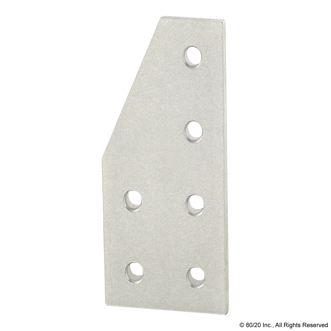 THE 6 HOLE - 90 DEGREE ANGLED STACKED FLAT PLATE IS AN EXTERNAL FASTENING METHOD THAT REQUIRES NO MACHINING SERVICES. THIS FLAT PLATE CREATES A 90-DEGREE ANGLE BETWEEN PROFILES AND ITS SHAPE REINFORCES THE STRENGTH OF THE CONNECTION. IT IS A DURABLE OPTION THAT IS EASY TO ASSEMBLE AND CAN BE RECONFIGURED AND REUSED. THE SUGGESTED MOUNTING HARDWARE CAN BE FOUND ON THE "SUGGESTED HARDWARE" TAB. TIP: USE DOUBLE OR TRIPLE SLIDE-IN ECONOMY T-NUTS TO SAVE TIME AND MONEY. PRE-LOAD YOUR HARDWARE PRIOR TO CONNECTING PROFILES TO SIMPLIFY YOUR ASSEMBLY.