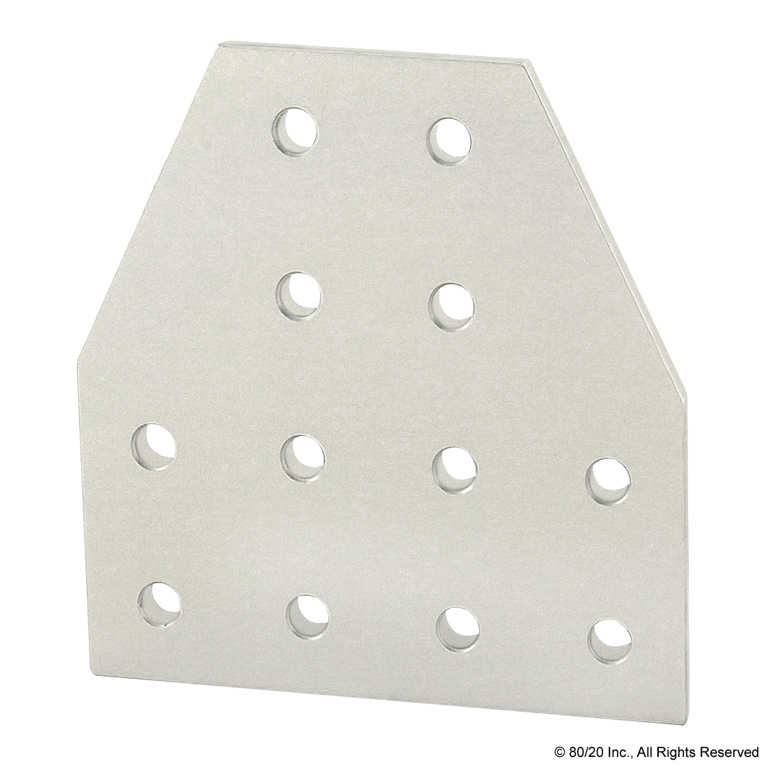 THE 12 HOLE - TEE FLAT PLATE IS A STRONG, EXTERNAL FASTENING METHOD THAT REQUIRES NO MACHINING SERVICES AND CAN BE USED TO CONNECT MORE THAN TWO PROFILES TOGETHER. THIS FASTENING OPTION CAN PROVIDE INFINITE POSITIONING ALONG THE PROFILE T-SLOT, ALLOWING FOR A LARGE DEGREE OF ADJUSTABILITY. IT IS A LONG-LASTING CONNECTION THAT IS EASILY ASSEMBLED AND CAN BE REPOSITIONED AND REUSED. THE SUGGESTED MOUNTING HARDWARE CAN BE FOUND ON THE "SUGGESTED HARDWARE" TAB. TIP: USE DOUBLE OR TRIPLE SLIDE-IN ECONOMY T-NUTS TO SAVE TIME AND MONEY. PRE-LOAD YOUR HARDWARE PRIOR TO CONNECTING PROFILES TO SIMPLIFY YOUR ASSEMBLY.