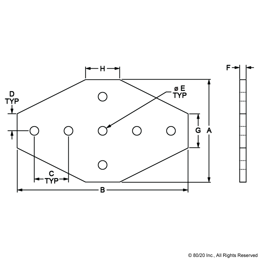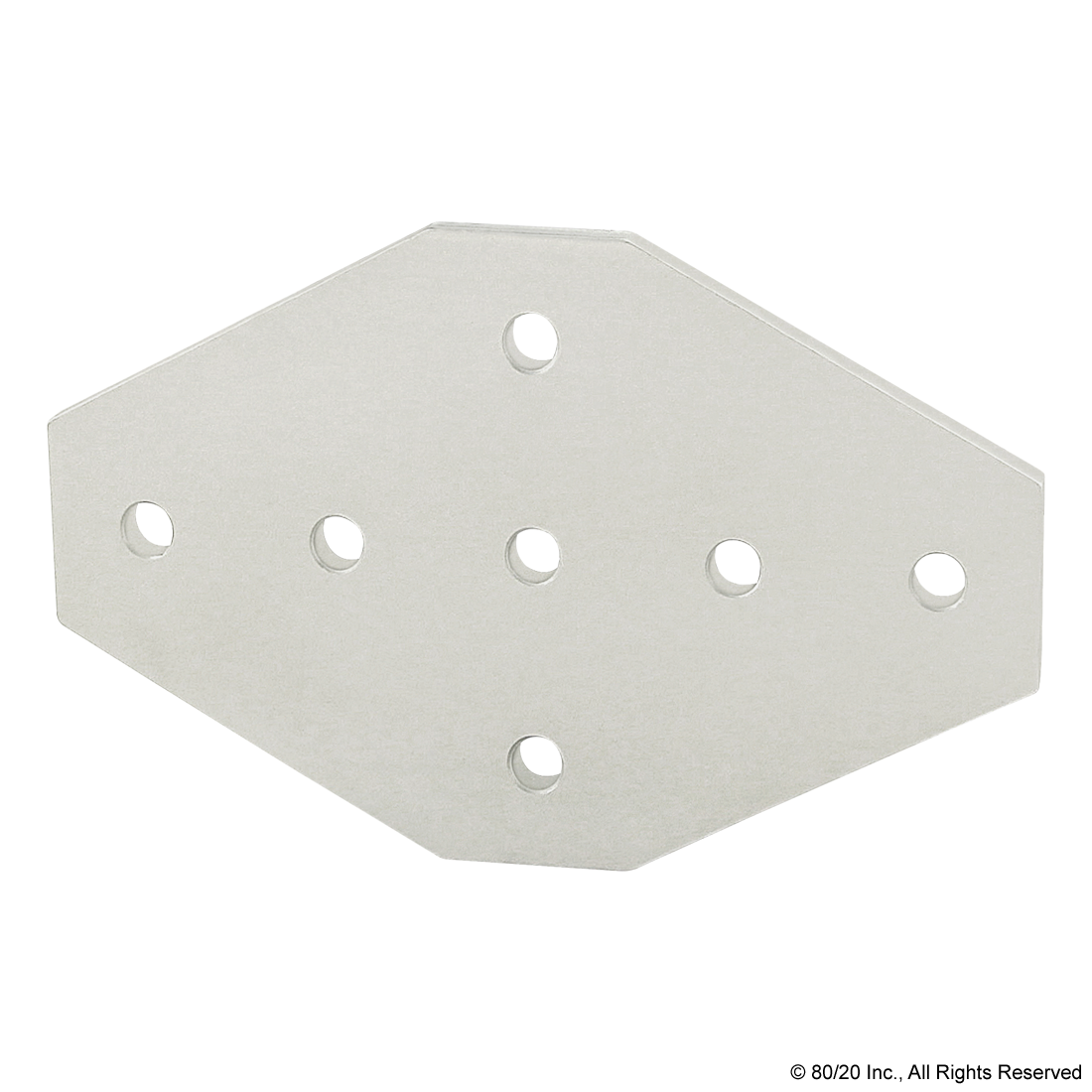 THE 7 HOLE - CROSS FLAT PLATE IS AN EXTERNAL FASTENING METHOD THAT CAN BE USED TO JOIN MORE THAN TWO PROFILES OR EVEN CREATE A 4-WAY CONNECTION HUB. IT PROVIDES A STRONG, LONG-LASTING CONNECTION THAT IS EASY TO ASSEMBLE AND REQUIRES NO MACHINING SERVICES. THE 7 HOLE - CROSS FLAT PLATE IS DURABLE AND CAN BE REPOSITIONED AND REUSED. THE SUGGESTED MOUNTING HARDWARE CAN BE FOUND ON THE "SUGGESTED HARDWARE" TAB. TIP: USE DOUBLE OR TRIPLE SLIDE-IN ECONOMY T-NUTS TO SAVE TIME AND MONEY. PRE-LOAD YOUR HARDWARE PRIOR TO CONNECTING PROFILES TO SIMPLIFY YOUR ASSEMBLY.,