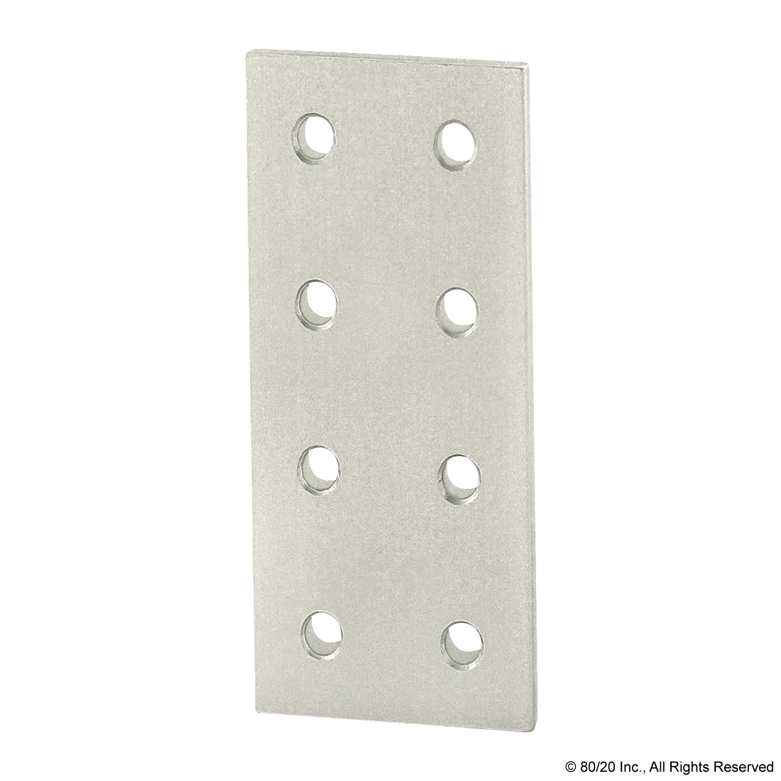 THE 8 HOLE - RECTANGULAR FLAT PLATE IS AN EXTERNAL FASTENING METHOD THAT REQUIRES NO MACHINING SERVICES. IT IS A DURABLE CONNECTION THAT CAN BE EASILY REPOSITIONED AND REUSED. THE FLAT PLATE CAN PROVIDE INFINITE POSITIONING ALONG THE PROFILE T-SLOT, ENABLING A LARGE DEGREE OF ADJUSTABILITY. WHEN THE BOLTS ARE TIGHTENED TO THE REQUIRED TORQUE THE 2-DEGREE DROP-LOCK FEATURE IS ENGAGED, HELPING TO ENSURE THE STRENGTH OF THE CONNECTION. THE SUGGESTED MOUNTING HARDWARE FOR THE 8 HOLE - RECTANGULAR FLAT PLATE CAN BE FOUND ON THE "SUGGESTED HARDWARE" TAB. TIP: USE A DOUBLE OR TRIPLE SLIDE-IN ECONOMY T-NUT TO SAVE TIME AND MONEY. PRE-LOAD YOUR HARDWARE PRIOR TO CONNECTING PROFILES TO SIMPLIFY YOUR ASSEMBLY.