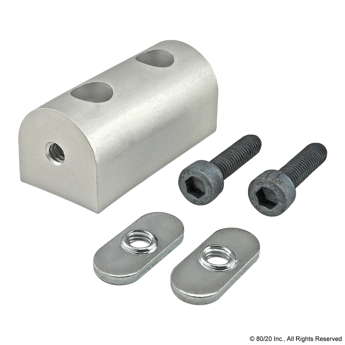 THE UNIVERSAL DYNAMIC PIVOT NUB IS COMMONLY USED TO CREATE EITHER A PERPENDICULAR OR PARALLEL DYNAMIC PIVOT WITH FULL AXIAL MOTION RANGING FROM 0-180 DEGREES. THE UNIVERSAL PIVOT NUB REQUIRES NO MACHINING AND CAN BE EASILY ASSEMBLED, LENDING ITSELF TO REPOSITIONING AND REUSE. THE HARDWARE TO MOUNT THE NUB TO A PROFILE IS INCLUDED. THE SUGGESTED MOUNTING HARDWARE TO ATTACH THE ARM TO THE NUB CAN BE FOUND ON THE "SUGGESTED HARDWARE" TAB.,