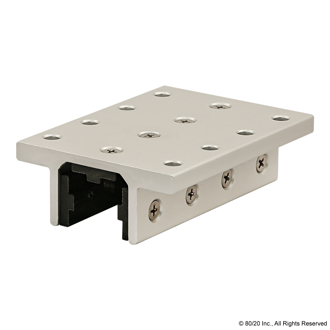 THE 3-SLOT MOUNT - DOUBLE FLANGE LONG STANDARD LINEAR BEARING WITHOUT BRAKE HOLES IS TYPICALLY USED IN LINEAR MOTION APPLICATIONS. IT HOUSES PROFILES WITH A MINIMUM OF THREE OPEN T-SLOTS, HAS A DOUBLE FLANGE AND IS A LONGER OPTION. THE BEARING INCLUDES PADS, SCREWS AND SHIMS; THE PADS ARE MADE OF SELF-LUBRICATING UHMW. ALL 80/20 BEARINGS ARE DESIGNED FOR COMPRESSION LOADS ONLY AND NOT INTENDED TO SUPPORT HANGING LOADS.