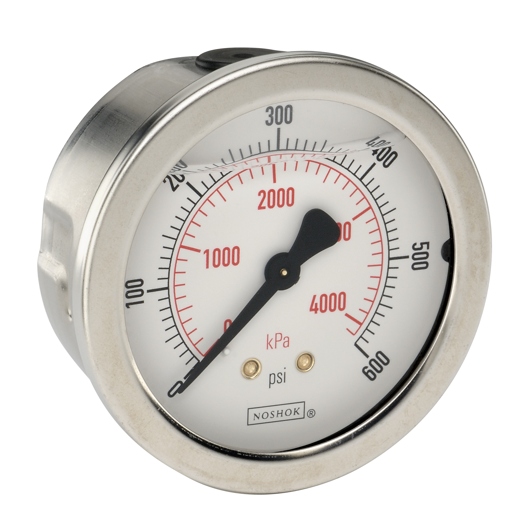 - Accuracy:Â 1.6Ambient Temperature Range (Glycerin Fill):Â -4 to 140Ambient Temperature Range (Special Fill):Â -40 to 140Application:Â AutomotiveConstructionHydraulics & pneumaticsPower generationTransportationWater managementBezel Material:Â 304 Stainless SteelCase Type:Â Stainless Steel (SS) Case, Liquid Filled, Back ConnectionCategory:Â 900 Series Acrylonitrile Butadiene Styrene (ABS) and Stainless Steel Liquid Filled Pressure GaugesConnection Size:Â SAE J1926-3:7/16-20 Adjustable, 1/4 in. National Pipe Thread (NPT). BrassDial/Display Size:Â Molded Plastic, White Background with Black Primary Scale & Red Secondary Scale. Ultraviolet (UV) Resistant.Distribution Manifolds:Â NOSHOK`s Distribution Manifolds connect multiple instruments to one diaphragm seal, eliminating multiple connections that lead to possible leak paths.Gauge Size:Â 2-1/2Lens/Display Material:Â PolycarbonateMaterial:Â 304 Stainless SteelMeasuring Element:Â Coiled Safety TubeMedia Temperature Range (Glycerin Fill):Â -4 to 140Media Temperature Range (Special Fill):Â -40 to 140Movement:Â Brass and Nylon with Highly Polished Bearing SurfacesNote:Â Includes FKM o-ringPointer:Â Molded PlasticPressure Range:Â 0 to 5,000Scale Option:Â psi/kPa Dual ScaleSchemaID:Â 101737Syndication_SET:Â 1Type:Â Pressure GaugeUninstalled Options and Accessories:Â Certificate of Cleaning (COCL)Certificate of Conformance (COC)Unit_SET:Â 1Working Pressure Limitations:Â Dynamic PressureThe working pressure should be limited to 60% of the dial rangeStatic PressureThe working pressure, where no sharp fluctuations occur, should be limited to 90% of the dial range