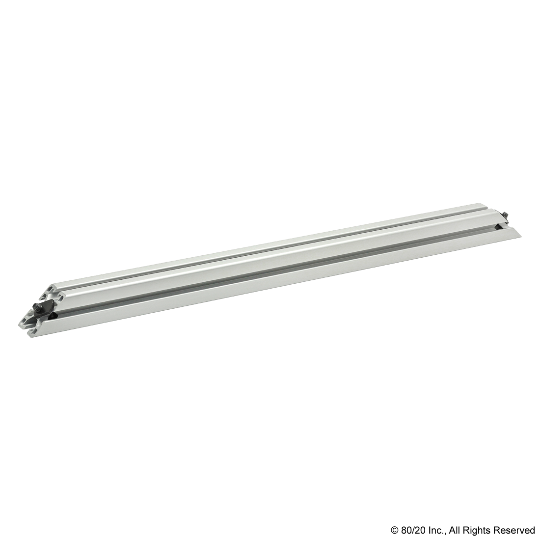 THE 45 DEGREE SUPPORT ASSEMBLY INCLUDES SOCKET HEAD CAP SCREWS, WASHERS AND T-NUTS. THE SUPPORT ASSEMBLY IS PRE-MACHINED WITH COUNTERBORES AND A 45 DEGREE MITER ANGLE ON BOTH ENDS. THIS FASTENING METHOD PROVIDES A CLEAN, FLUSH CONNECTION AND IS TYPICALLY USED TO REINFORCE A 90 DEGREE CONNECTION. THIS CONNECTION LENDS ITSELF TO APPLICATIONS WITH HEAVY LOADS TO MINIMIZE BEAM DEFLECTION.