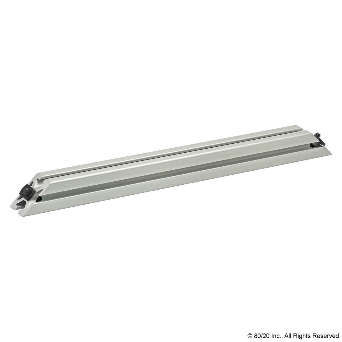 THE 45 DEGREE SUPPORT ASSEMBLY INCLUDES SOCKET HEAD CAP SCREWS, WASHERS AND T-NUTS. THE SUPPORT ASSEMBLY IS PRE-MACHINED WITH COUNTERBORES AND A 45 DEGREE MITER ANGLE ON BOTH ENDS. THIS FASTENING METHOD PROVIDES A CLEAN, FLUSH CONNECTION AND IS TYPICALLY USED TO REINFORCE A 90 DEGREE CONNECTION. THIS CONNECTION LENDS ITSELF TO APPLICATIONS WITH HEAVY LOADS TO MINIMIZE BEAM DEFLECTION.