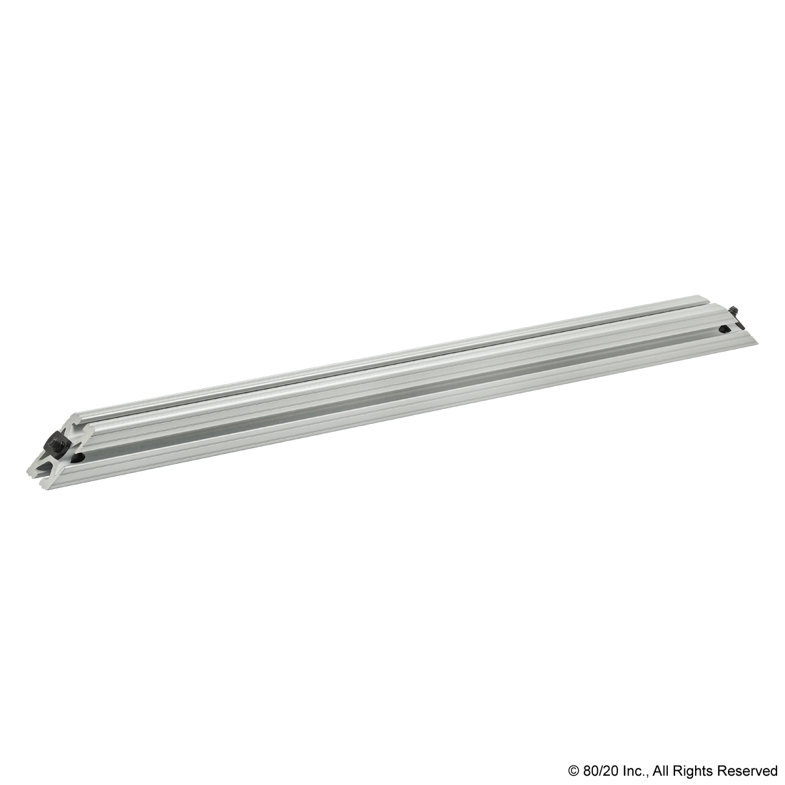 THE 45 DEGREE SUPPORT ASSEMBLY INCLUDES SOCKET HEAD CAP SCREWS, WASHERS AND T-NUTS. THE SUPPORT ASSEMBLY IS PRE-MACHINED WITH COUNTERBORES AND A 45 DEGREE MITER ANGLE ON BOTH ENDS. THIS FASTENING METHOD PROVIDES A CLEAN, FLUSH CONNECTION AND IS TYPICALLY USED TO REINFORCE A 90 DEGREE CONNECTION. THIS CONNECTION LENDS ITSELF TO APPLICATIONS WITH HEAVY LOADS TO MINIMIZE BEAM DEFLECTION.