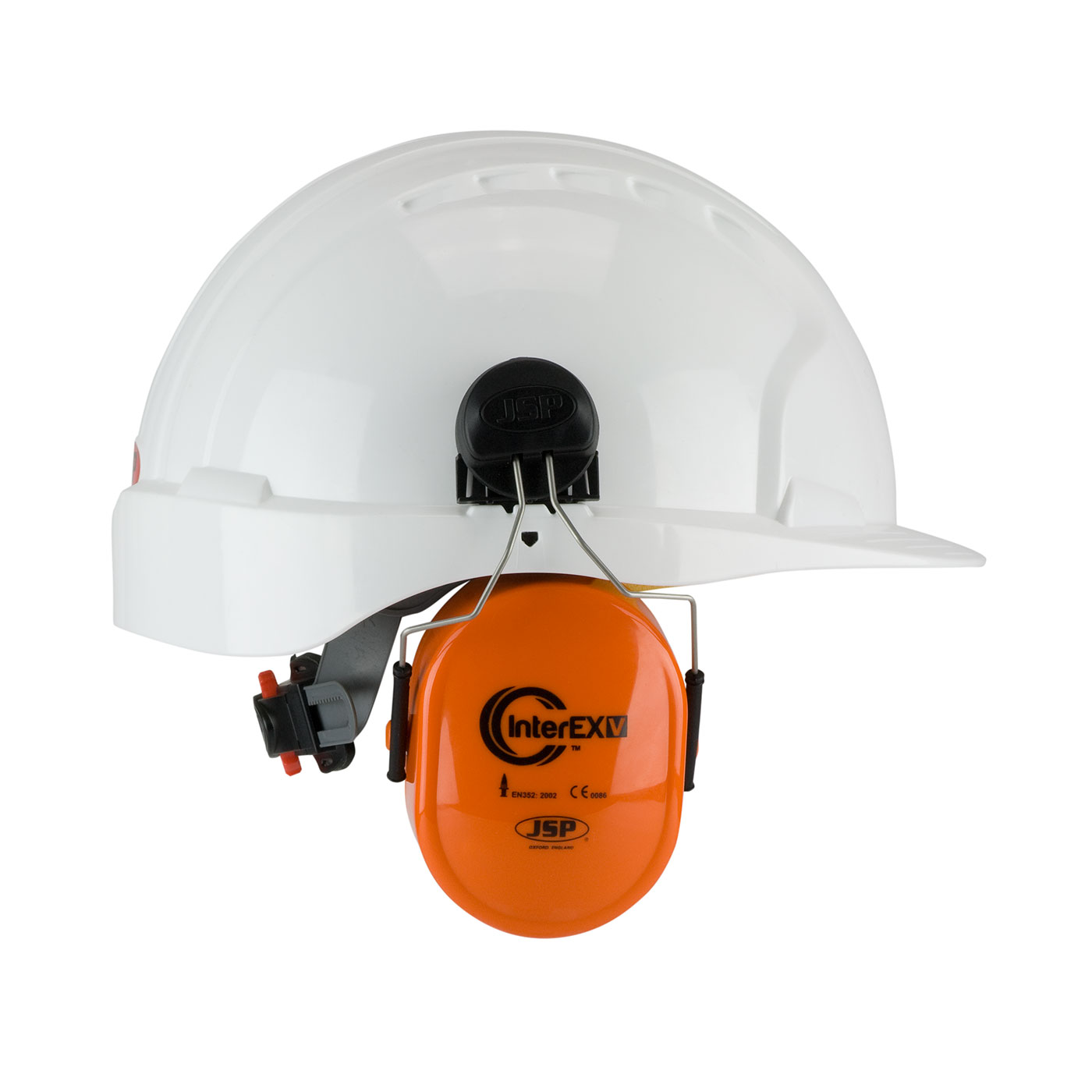 - Brand:Â Inter EXVâ„¢Case qty:Â 10Case uom:Â prCategory:Â Head ProtectionColor:Â Hi-Vis OrangeGrouping:Â Hard HatsSegment:Â Hard Hat AccessoriesSize:Â OSSizes:Â --OS--Specs:Â JSP Inter Extreme Cap Mounted Ear Muffs| NRR 24 dB| Hi-Vis Orange| Fit Universal Slots of Hard Hat| Twin Point Mounted Ear CupsStyle:Â 262-AEK020-HV