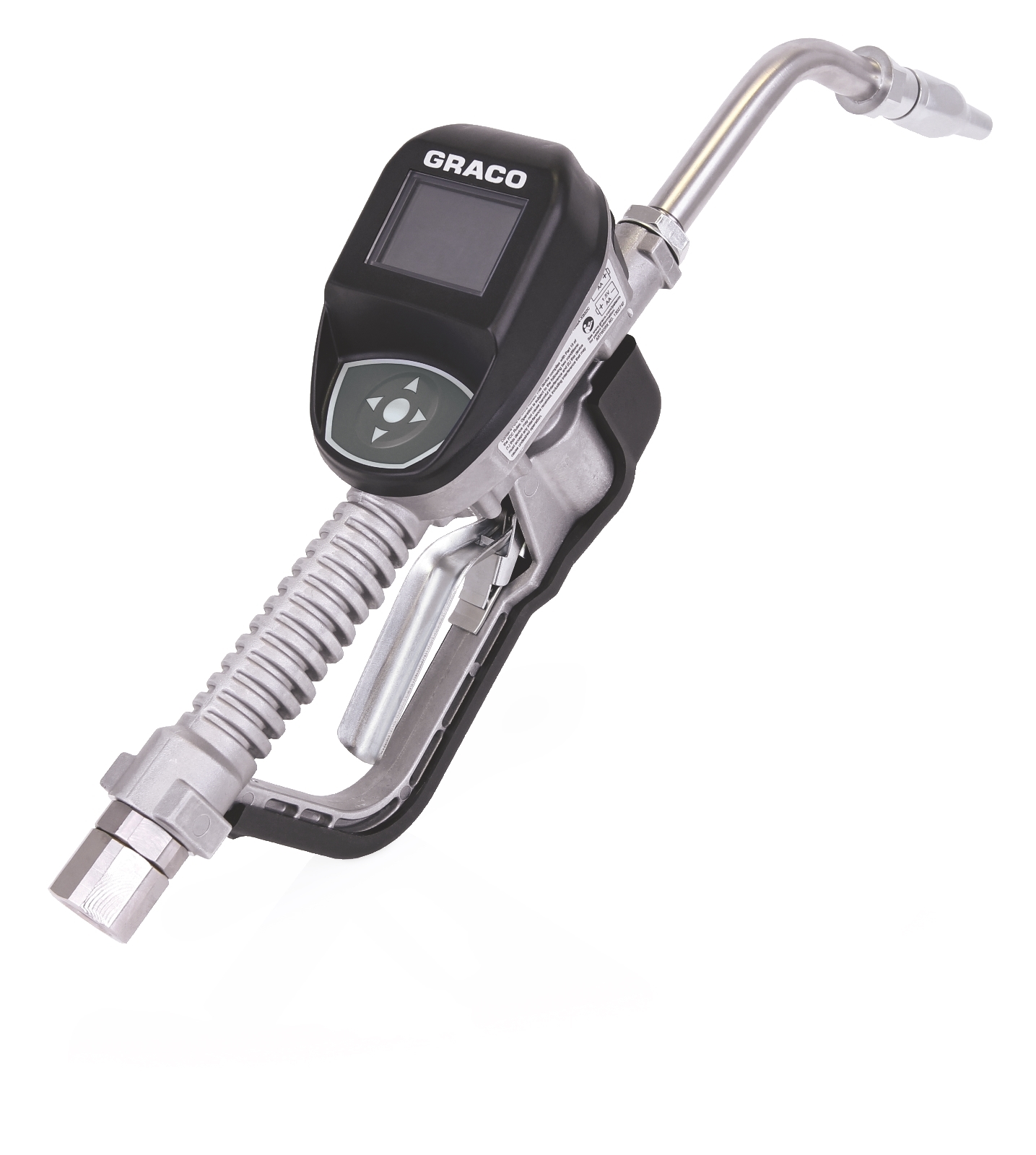 - Compatible material: Oil;ATFDimension uom code: INDispense type: PresetDisplay Type: ElectronicDivision code: LEDExtension type: RigidFluid inlet thread gender: FemaleFluid outlet thread gender: FemaleIncludes: Nozzle, Rigid ExtensionInlet size (cm): 1.27Inlet size (in): 1/2Inlet size (mm): 12.7Inlet thread type: NPTMaximum flow rate (gpm): 8Maximum flow rate (l/min): 30Maximum operating temperature (°c): 70Maximum operating temperature (°f): 158Maximum recorded dispense: 9999Maximum storage temperature (°c): 70Maximum storage temperature (°f): 158Maximum working pressure (bar): 103.4Maximum working pressure (kpa): 10340Maximum working pressure (mpa): 10.3Maximum working pressure (psi): 1500Meter accuracy (%): Â±0.5Meter technology: Oval GearMetering gun weight (kg): 2.4Metering gun weight (lb): 5.3Minimum flow rate (gpm): 0.25Minimum flow rate (l/min): 0.9Minimum operating temperature (°c): -16Minimum operating temperature (°f): 4Nozzle type: Oil Automatic Quick-CloseOutlet thread type: Straight Thread O-Ring BossOverall height (cm): 14.6Overall height (in): 5.75Overall height (mm): 146Overall length (cm): 33Overall length (in): 13Overall length (mm): 330Overall width (cm): 9.5Overall width (in): 3.75Overall width (mm): 95Product type: MeterRecommended environment: IndoorSplit 5: OILTrigger lock: LockingTrigger protection type: GuardType: Electronic Metered Dispense ValveUnit of measure: Quart;Pint;Gallon;LiterValve Type: MeteredWetted Material: Aluminum;Stainless Steel;PBT/PC;Zinc;Nitrile Rubber;CS