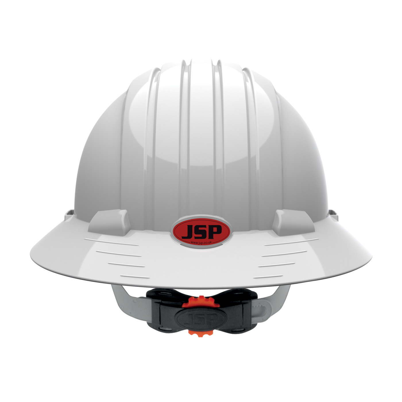 THE EVOLUTION® DELUXE 6161 FULL BRIM HARD HAT IS A TRUE EVOLUTION OF THE LONG ESTABLISHED MK2 AND MK3 HARD HATS. IT`S SHELL IS MADE OF HIGH DENSITY POLYETHYLENE (HDPE) AND HAS MANY USEFUL FEATURES. IT COMES WITH A 6-POINT SUSPENSION SYSTEM WITH POLYESTER TEXTILE STRAPS. THE CHAMLON SWEATBAND HAS AN EGYPTIAN COTTON CORE WITH POROUS PU COATING FOR MAXIMUM SWEAT ABSORPTION, WHICH IS PH NEUTRAL AND DERMATOLOGICALLY TESTED. THE FULL BRIM PROVIDES ADDITIONAL PROTECTION TO THE BECK AND EARS AGAINST SUN, GLARE, RAIN, SNOW, AND FALLING DEBRIS. IT ALSO COMES WITH A WHEEL RATCHET WHICH IS THE NEW EASY WAY TO CREATE A FIRM COMFORT FIT.