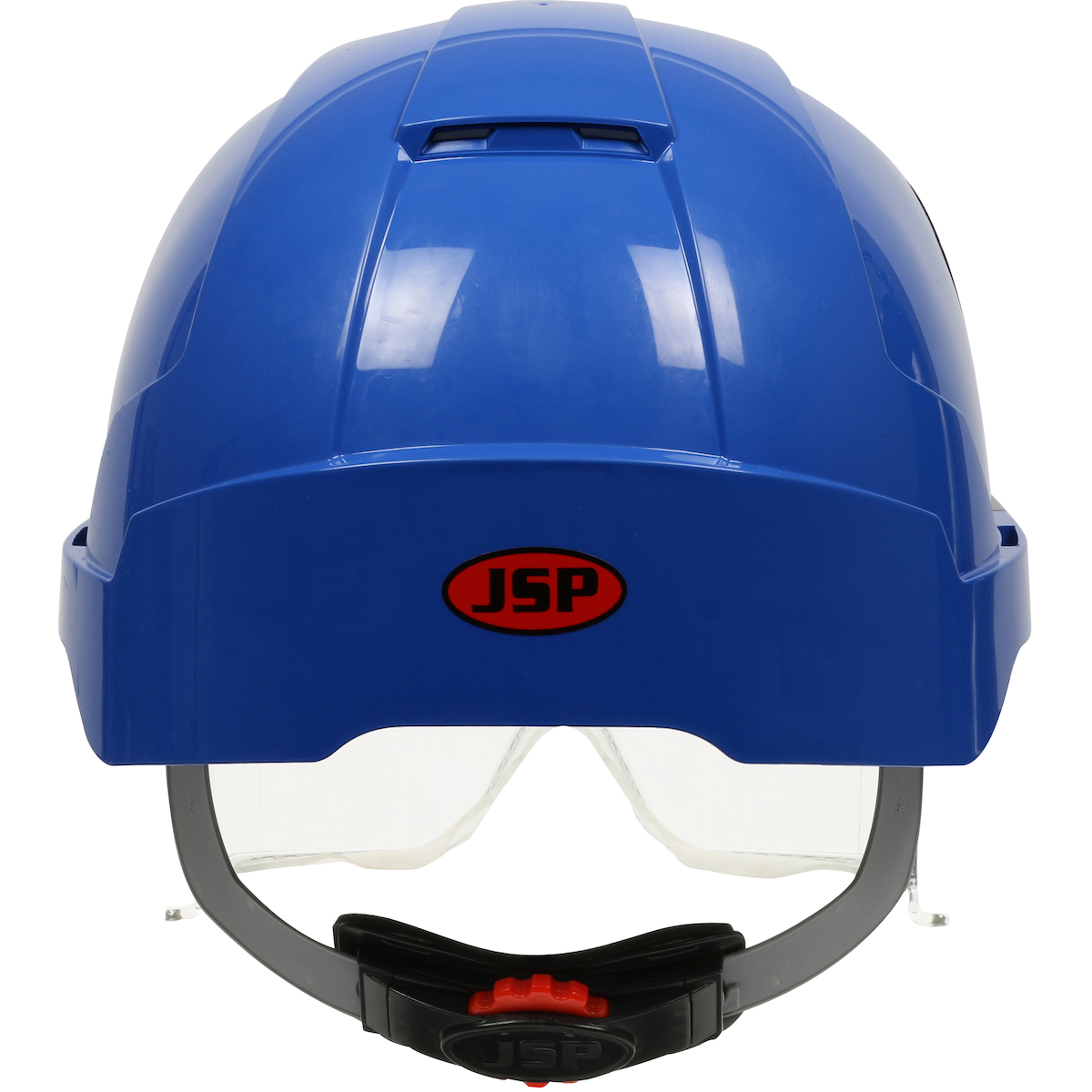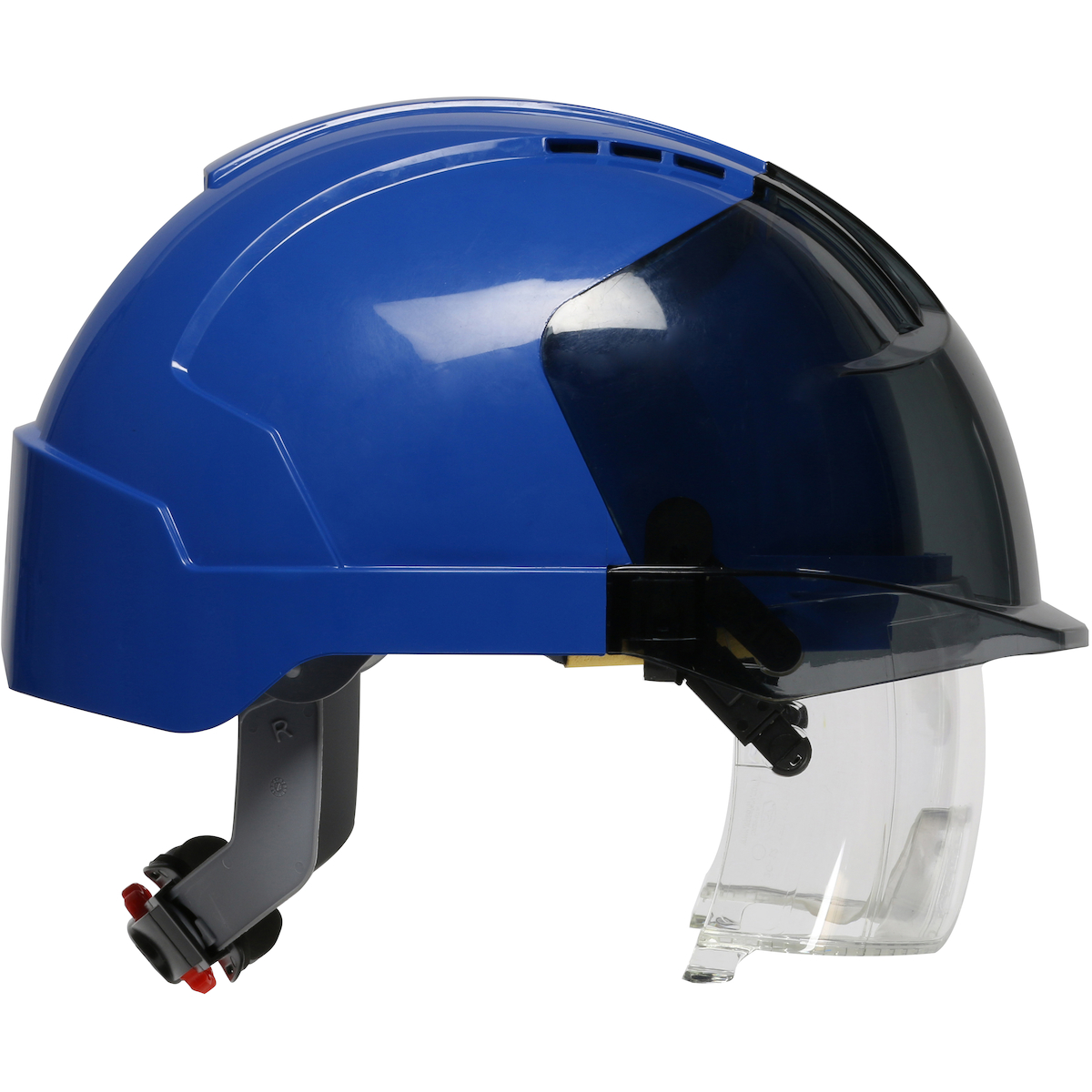JSP® EVO® VISTALENS™ NEXT GENERATION INDUSTRIAL SAFETY HELMET OFFERS PREMIUM COMFORT AND FEATURES INTEGRATED ANSI Z87.1 LENS COATED FOR SCRATCH AND FOG RESISTANCE OFFERING A UNOBSTRUCTED PANORAMIC VIEW WITH MINIMAL DISTORTION. THE FULLY ADJUSTABLE LENS IS EASY TO RETRACT AND DEPLOY AND PIVOTS SMOOTHLY ALLOWING THE WEARER TO ADJUST THE POSITION AND FOR MAXIMUM COVERAGE AND PROTECTION. 6-POINT POLYESTER TEXTILE SUSPENSION WITH REVOLUTION™ WHEEL RATCHET IS EASY TO USE AND CREATES A FIRM COMFORTABLE FIT. EXCELLENT FOR APPLICATIONS THAT REQUIRE PROTECTION FROM FALLING DEBRIS AND LOW HANGING OBJECTS IN INDUSTRIAL AND CONSTRUCTION APPLICATIONS.