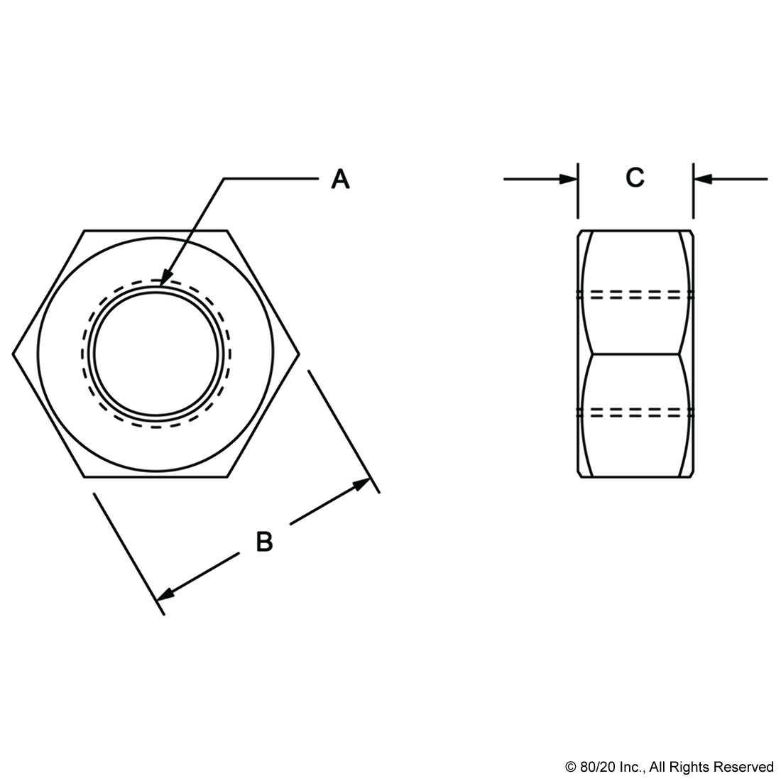 3007 80/20 | 8-32 HEX NUT