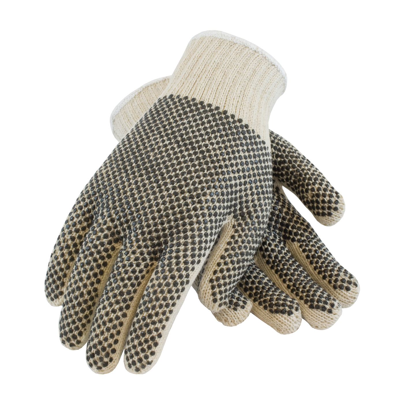 - Brand: PIP®Case qty: 240Case uom: prCategory: Hand ProtectionCoating: PVCCoating color: BlackCoating coverage: Double-SidedColor: NaturalConstruction: --Coated Seamless Knit--Cuff: Knit WristFeatures: Seamless knit shell is comfortable and flexible|Knit Wrist helps prevent dirt and debris from entering the glove|Double-sided PVC dots provide enhanced grip and extra cut and abrasion resistance|Small size fits ladies wellGauge: 7Grip: DotGrouping: SeamlessGlove CoatedLiner material: --Cotton--Polyester--Prop 65: CancerProp 65 label: https://us.pipglobal.com/images/P65-Warning-Label-Cancer.jpgSegment: Seamless Knits for General DutySize: LSizes: --L--S--Specs: Natural Color| Dotted| 7 Gauge| Double Side Black Dots| Dense Dot PatternStyle: 37-C112PDD