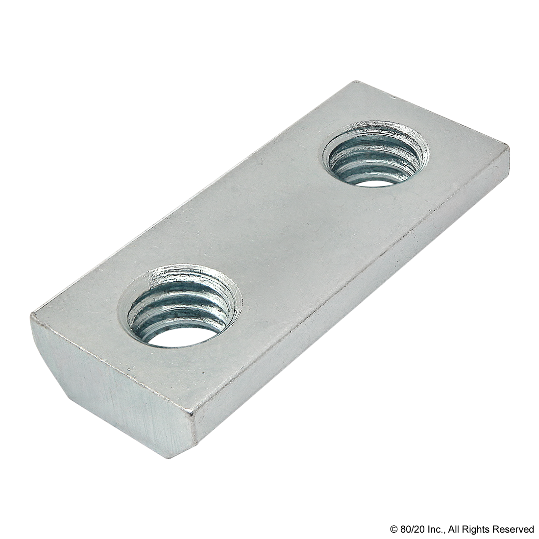 THE DOUBLE ANCHOR SLIDE-IN T-NUT IS USED WITH A DOUBLE ANCHOR FASTENER. IT LOADS FROM THE PROFILE END AND IS A STRONG, DURABLE CONNECTION. THERE ARE OPTIONS AVAILABLE IN SIZE, THREAD, AND FINISH. IMPORTANT NOTE: THE DOUBLE ANCHOR SLIDE-IN T-NUT CAN ONLY BE USED WITH A DOUBLE ANCHOR FASTENER.,