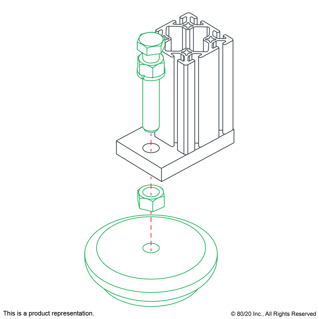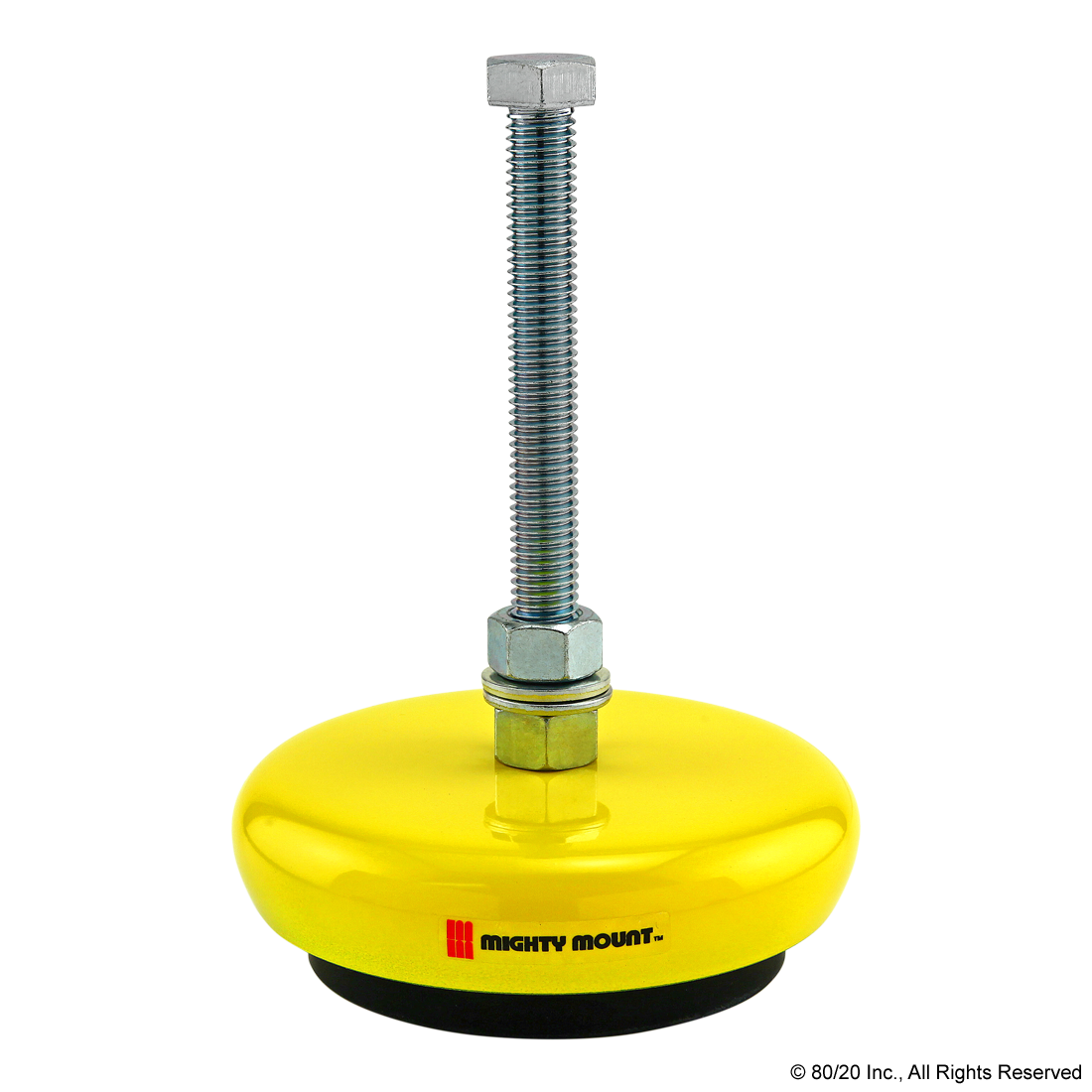 THE MIGHTY MOUNT® IS A FOOT WITH A HIGH LEVEL OF VIBRATION AND SHOCK ISOLATION. IT HAS A NON-SKID ELASTOMER PAD WITH OPTIONS AVAILABLE OF UP TO 4200 POUNDS (453 KILOGRAMS). THE MIGHTY MOUNT® HAS A POWDER COATED SAFETY-YELLOW STEEL HOUSING AND IS A HEAVY-DUTY OPTION, PERFECT FOR INDUSTRIAL APPLICATIONS SUCH AS MACHINE FRAMING, AUTOMATION SOLUTIONS, AND GUARDS. IT IS RECOMMENDED FOR USE WITH LEVELING ANCHOR BASE PLATES.,