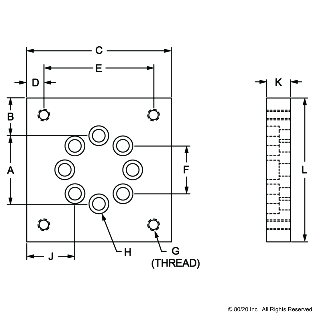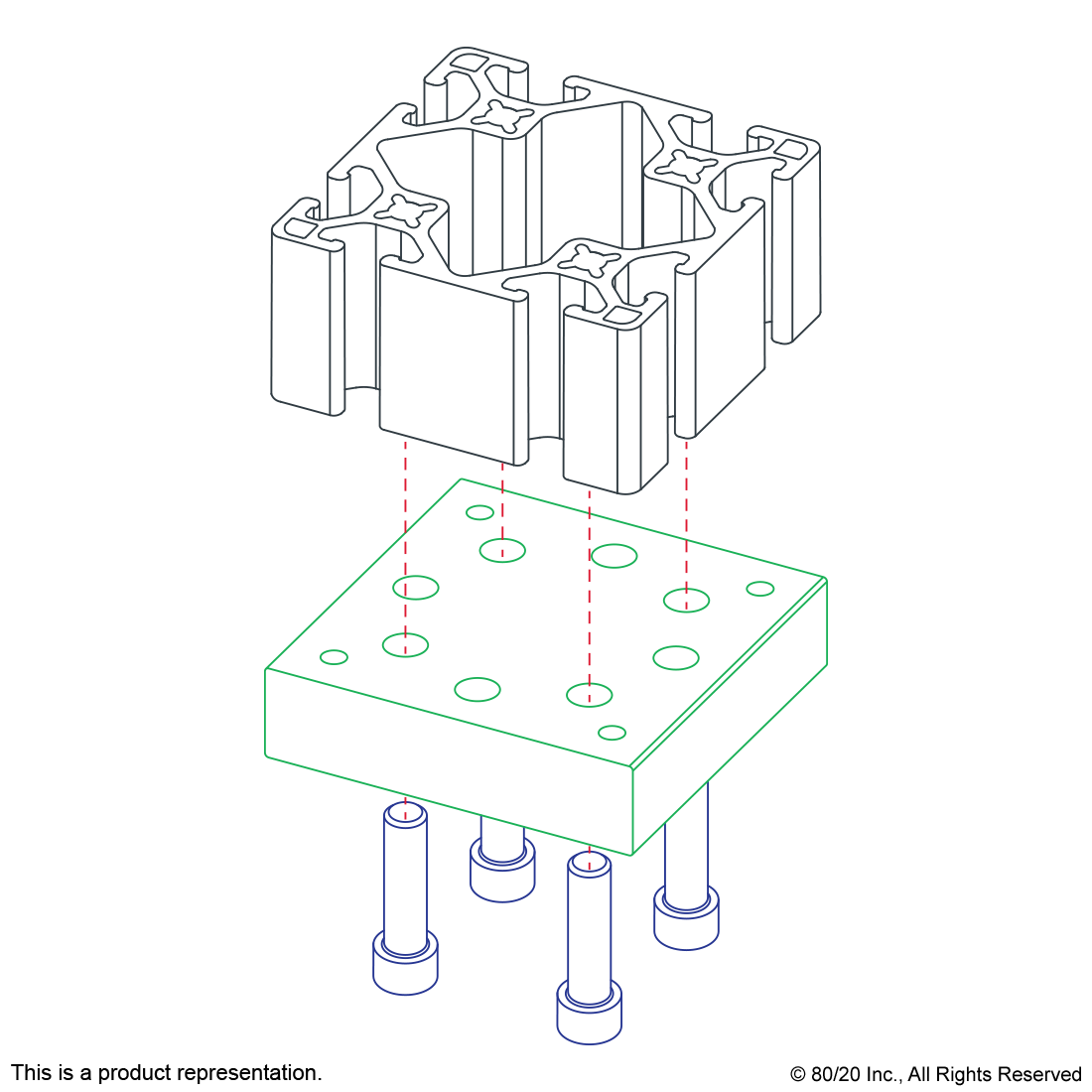 THE LEVELING CASTER BASE PLATE IS MADE OF ANODIZED ALUMINUM TO WITHSTAND DAILY USE AND WEAR AND TEAR. IT BOLTS TO A PROFILE END OR SIDE AND IS COMMONLY USED TO MOUNT HEAVY-DUTY CASTERS FOR AN ADDED LAYER OF STRENGTH AND DURABILITY. IT REQUIRES A TAP TO MOUNT TO THE PROFILE END.