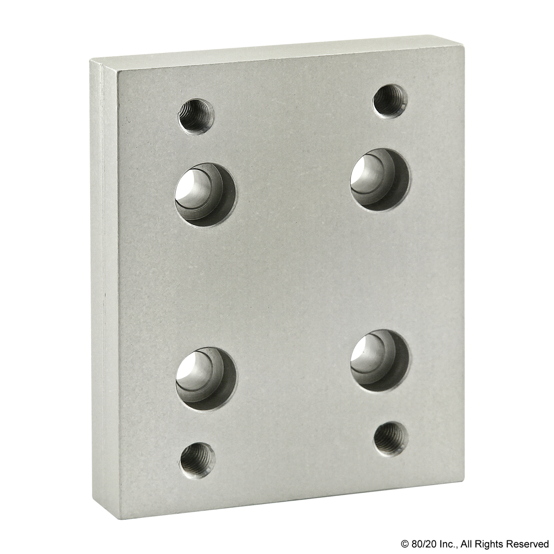 THE FLANGE MOUNT CASTER BASE PLATE IS MADE OF ANODIZED ALUMINUM TO WITHSTAND DAILY USE AND WEAR AND TEAR. IT BOLTS TO A PROFILE END OR SIDE AND IS COMMONLY USED TO MOUNT CASTERS FOR AN ADDED LAYER OF STRENGTH AND DURABILITY. IT REQUIRES A TAP TO MOUNT TO THE PROFILE END.